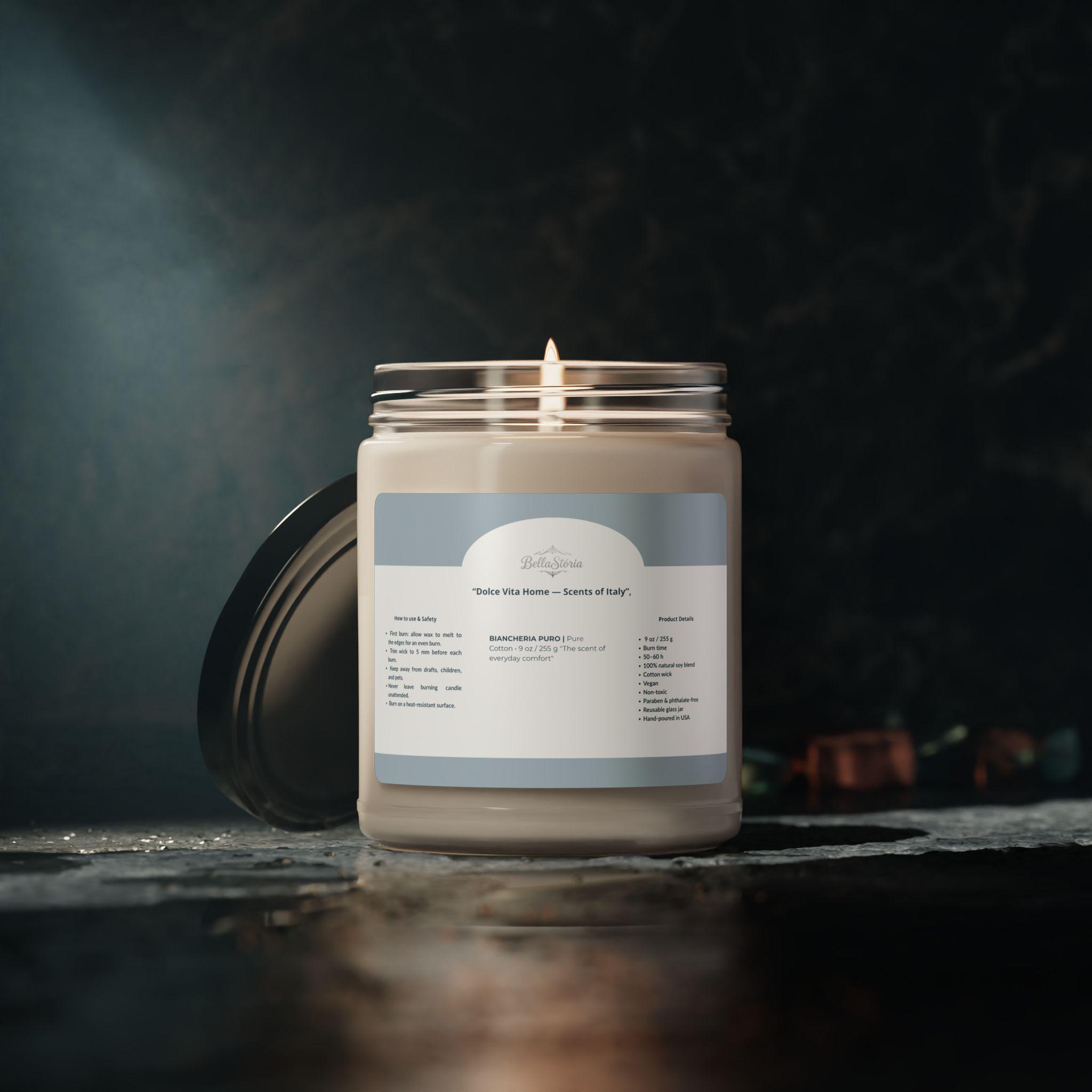 Experience the luxurious Dolce Vita Home - Puro Cotone Candle, featuring a Fresh Linen & Cotton Flower scent. This 9 oz soy wax candle offers a clean cotton aromatherapy experience, perfect for creating a relaxing and fresh atmosphere in your home. Ideal for those who enjoy the scent of fresh laundry and florals, this candle is a great addition to your self-care routine or as a thoughtful gift for special occasions like housewarmings or birthdays.