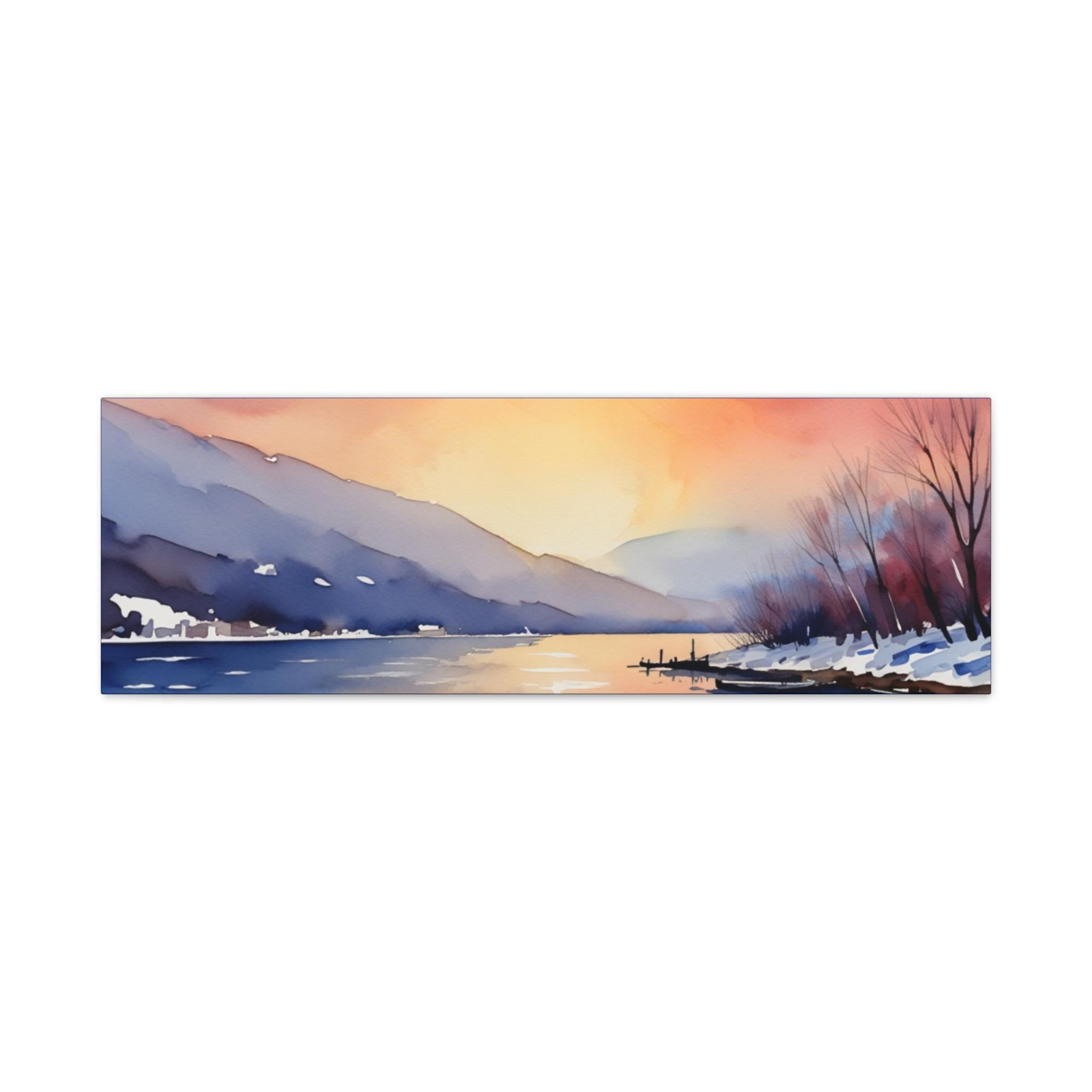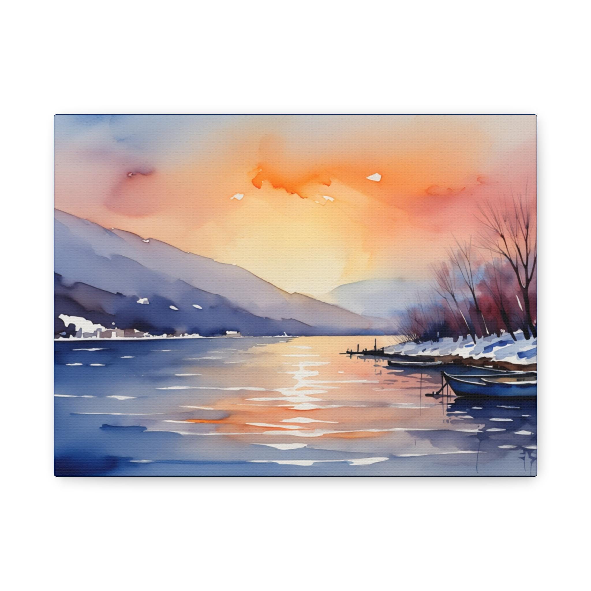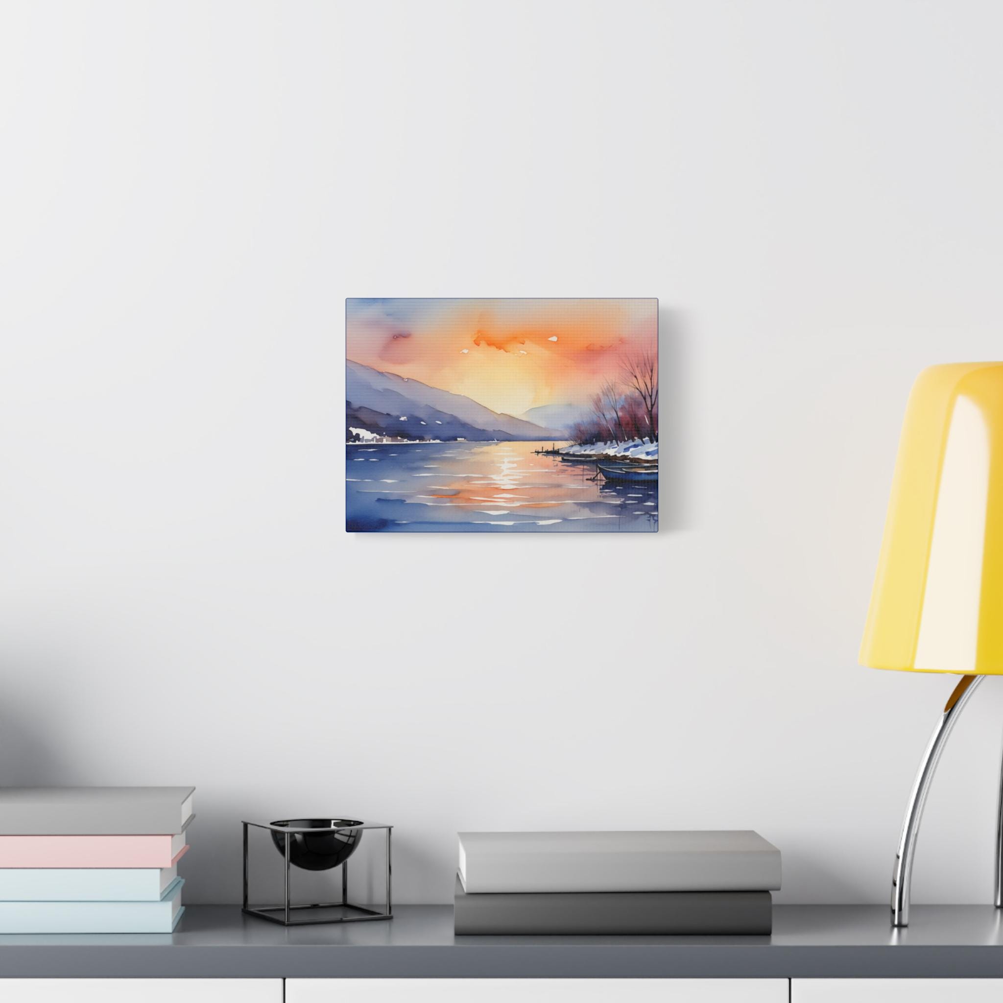 Transform your space with this stunning Matte Canvas, Stretched, 1.25" artwork. Featuring a captivating watercolor landscape at sunset, this canvas print evokes feelings of serenity and warmth, making it a perfect addition to any home or office setting. Ideal for art lovers and those seeking to create a peaceful atmosphere, this piece is versatile enough for various decor styles, from modern to traditional. It's a thoughtful gift for holidays like Christmas, birthdays, or housewarming celebrations. Elevate your interior design with this beautiful canvas that brings a touch of nature indoors, creating a calming retreat from everyday life.