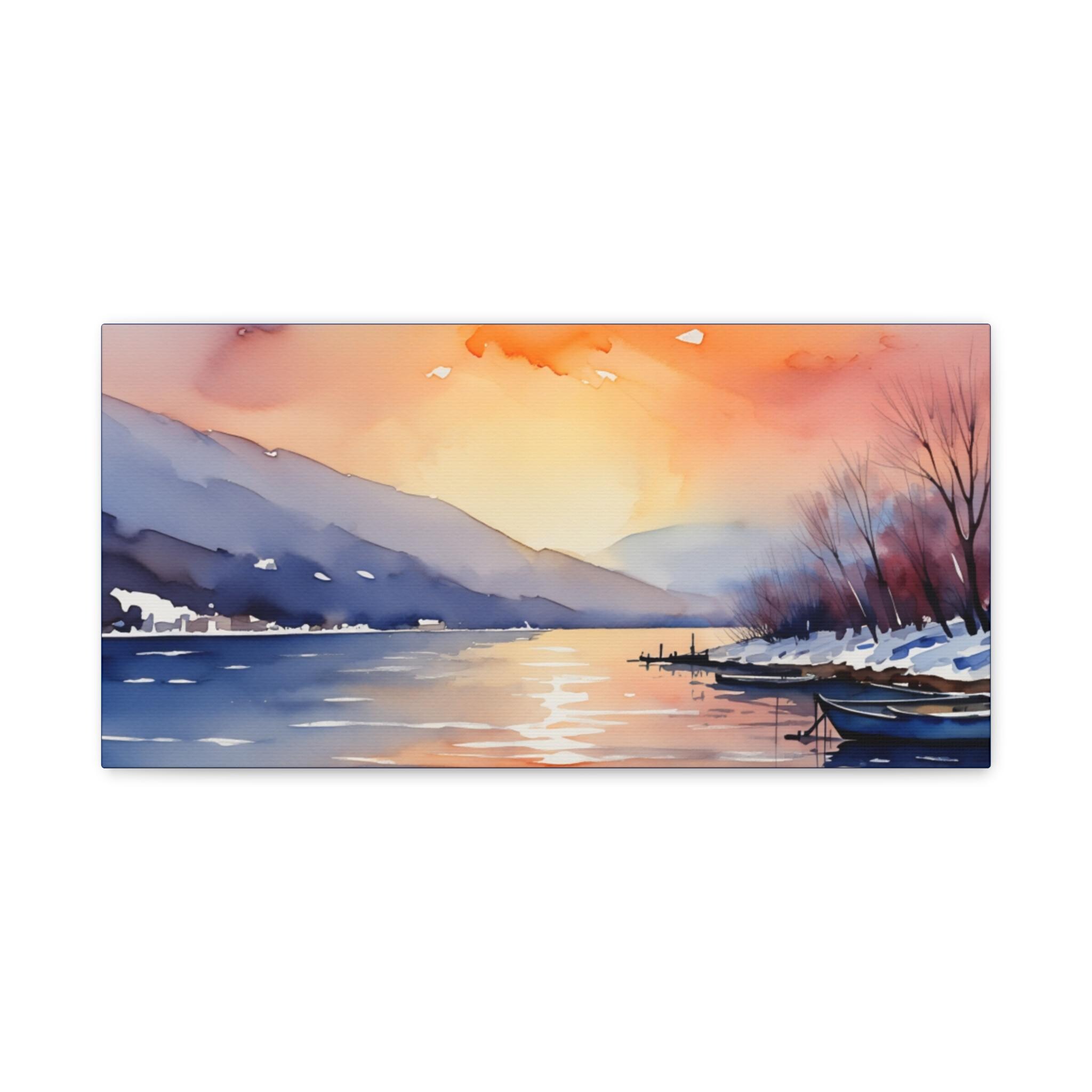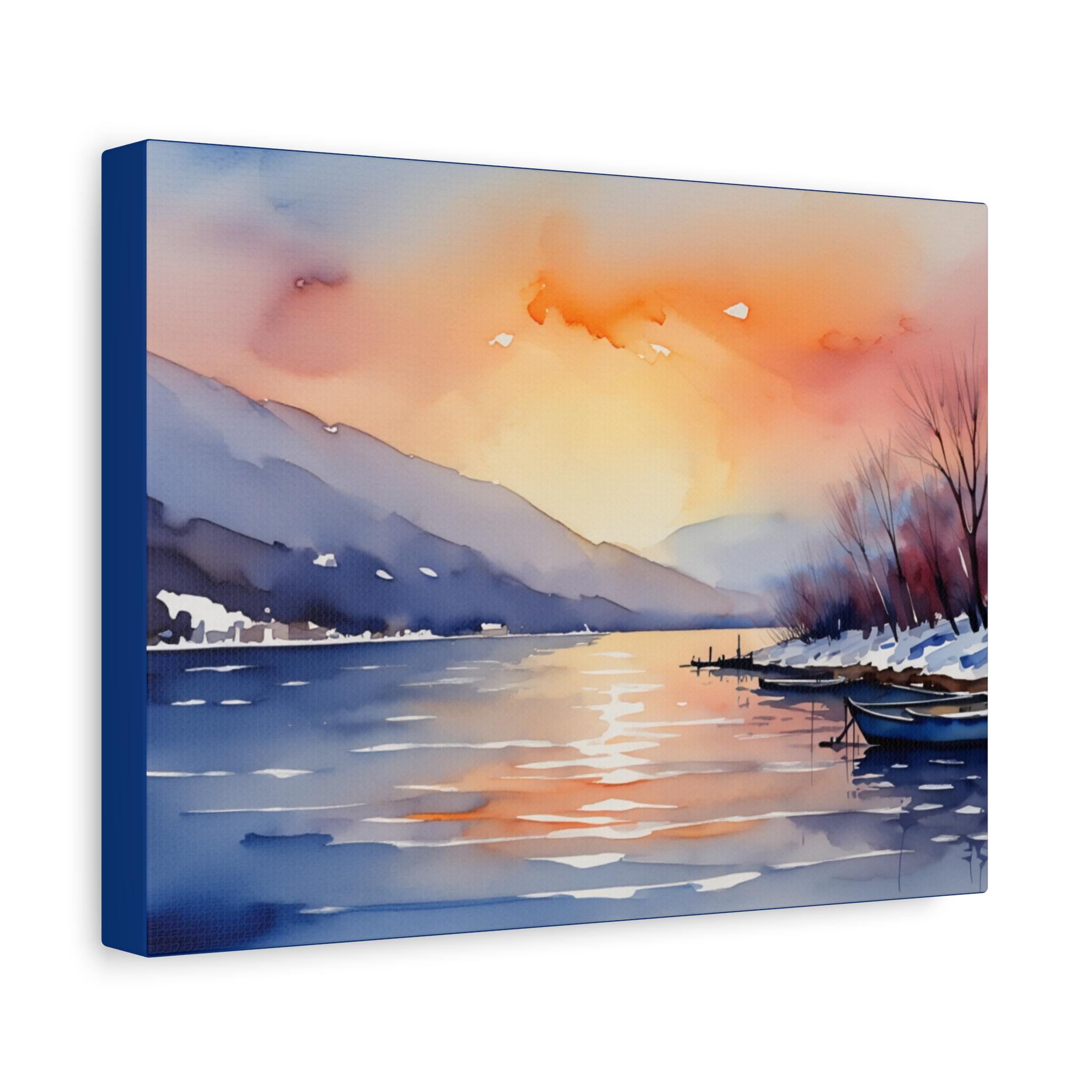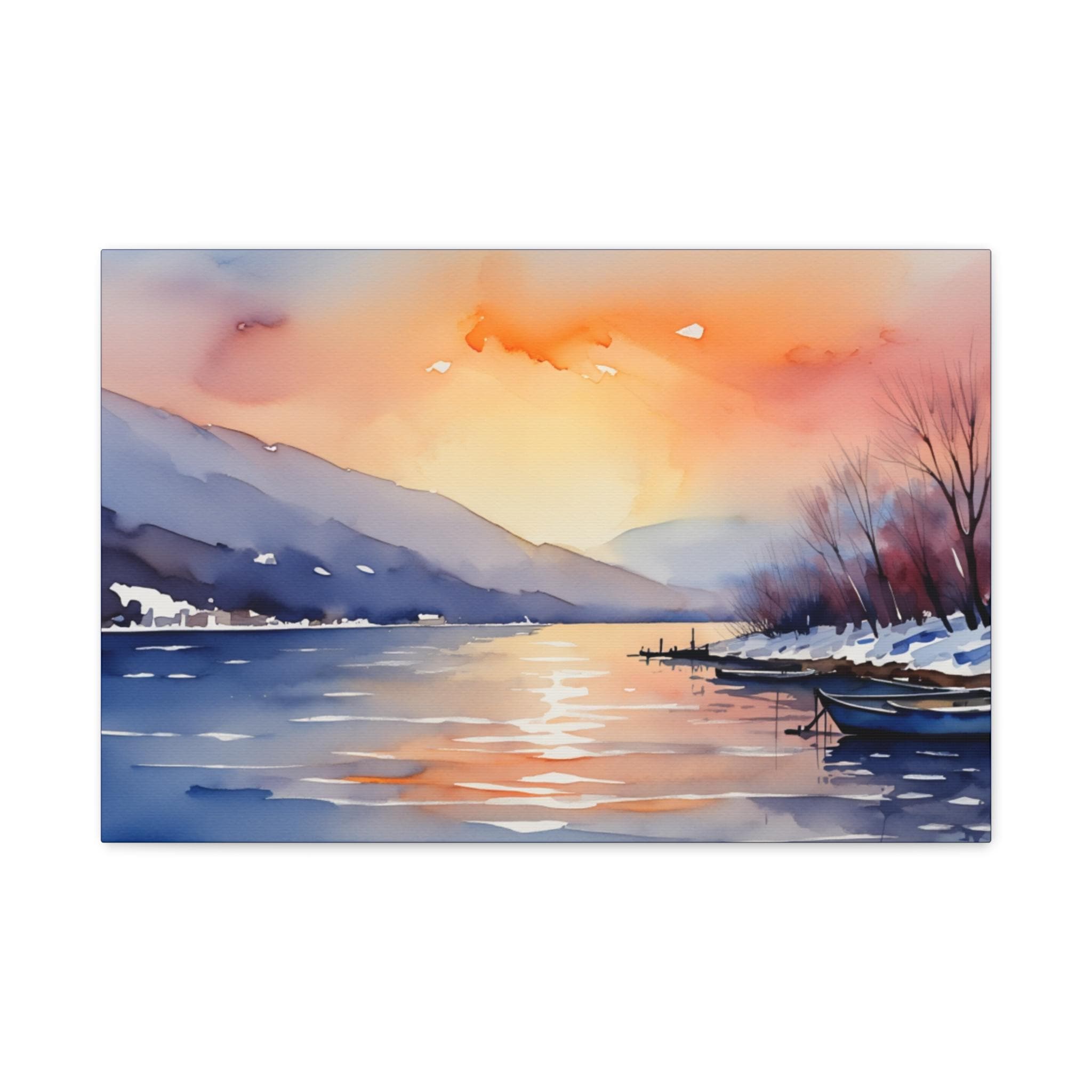 Transform your space with this stunning Matte Canvas, Stretched, 1.25" artwork. Featuring a captivating watercolor landscape at sunset, this canvas print evokes feelings of serenity and warmth, making it a perfect addition to any home or office setting. Ideal for art lovers and those seeking to create a peaceful atmosphere, this piece is versatile enough for various decor styles, from modern to traditional. It's a thoughtful gift for holidays like Christmas, birthdays, or housewarming celebrations. Elevate your interior design with this beautiful canvas that brings a touch of nature indoors, creating a calming retreat from everyday life.
