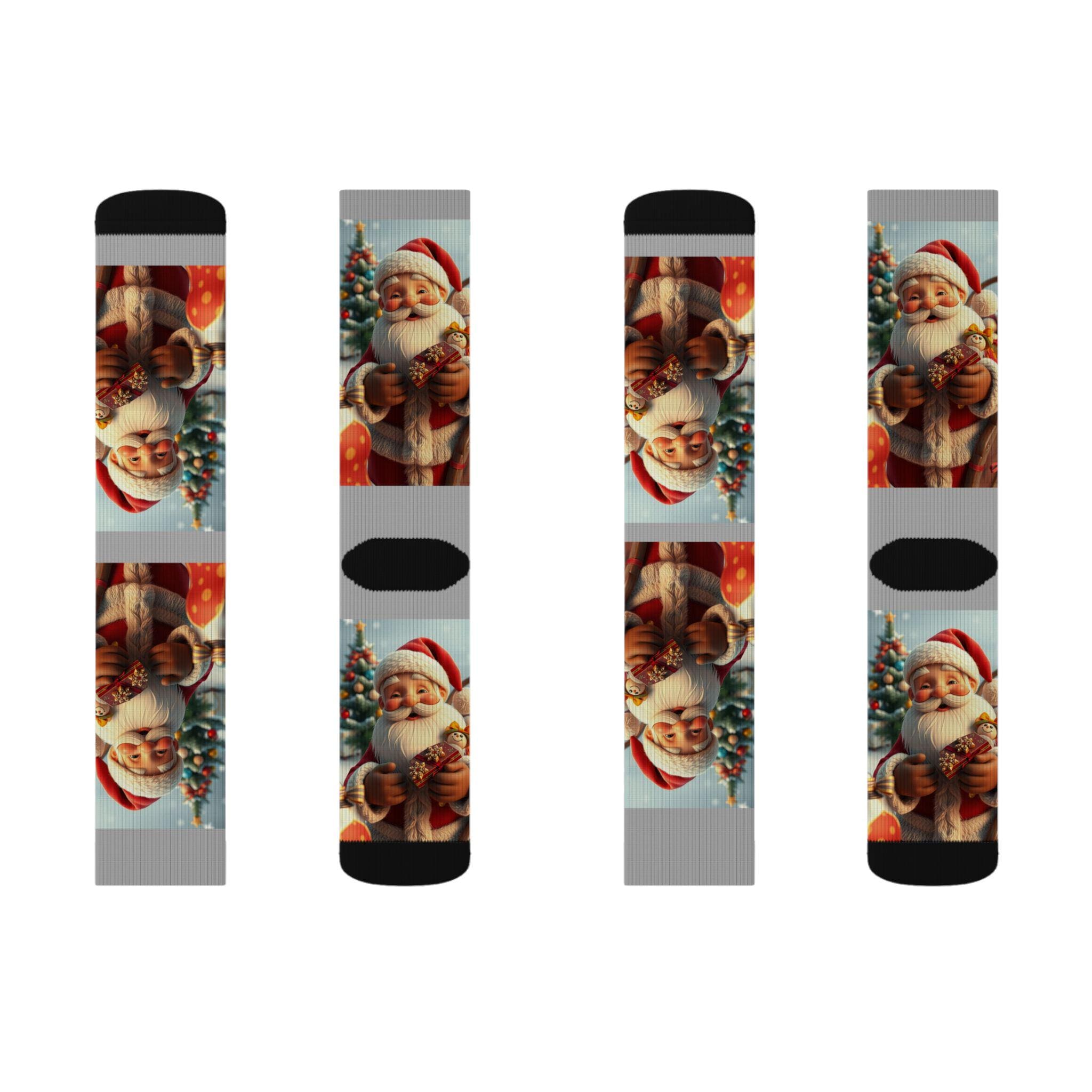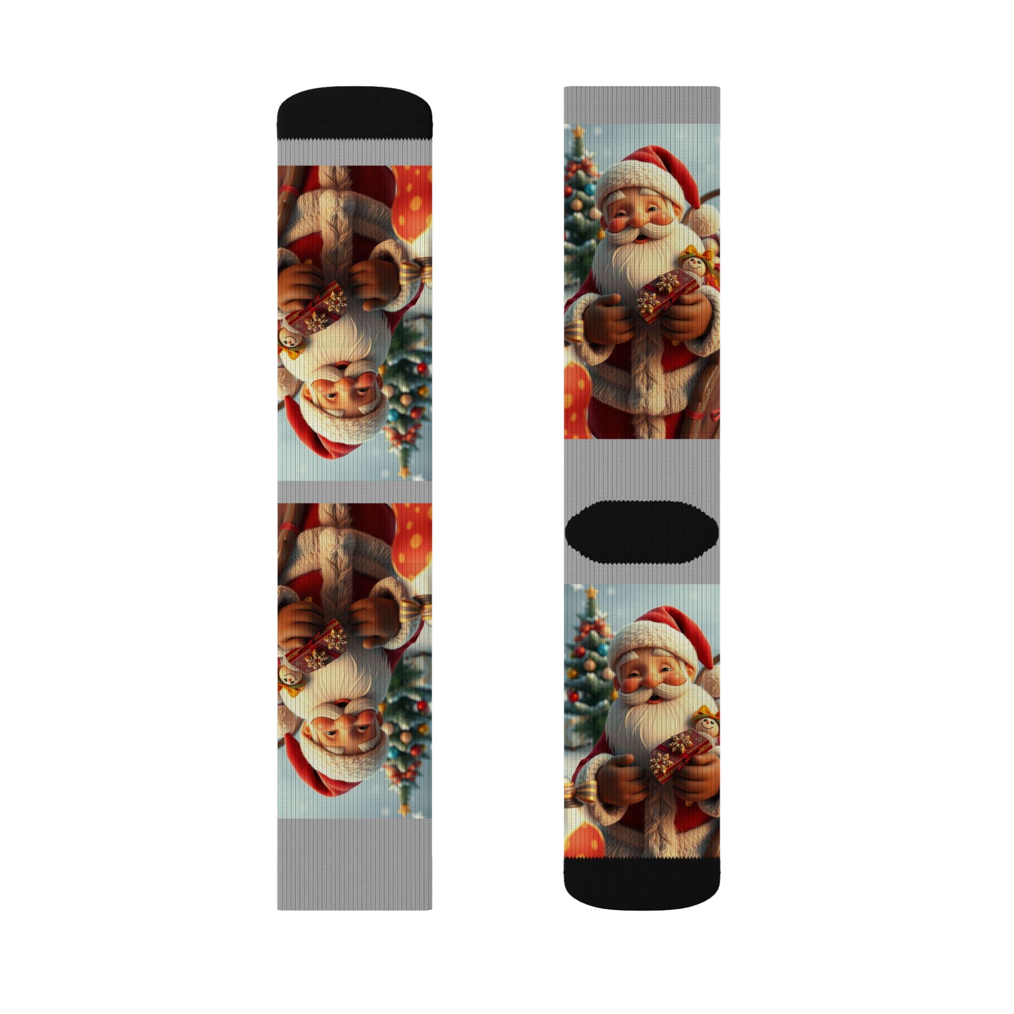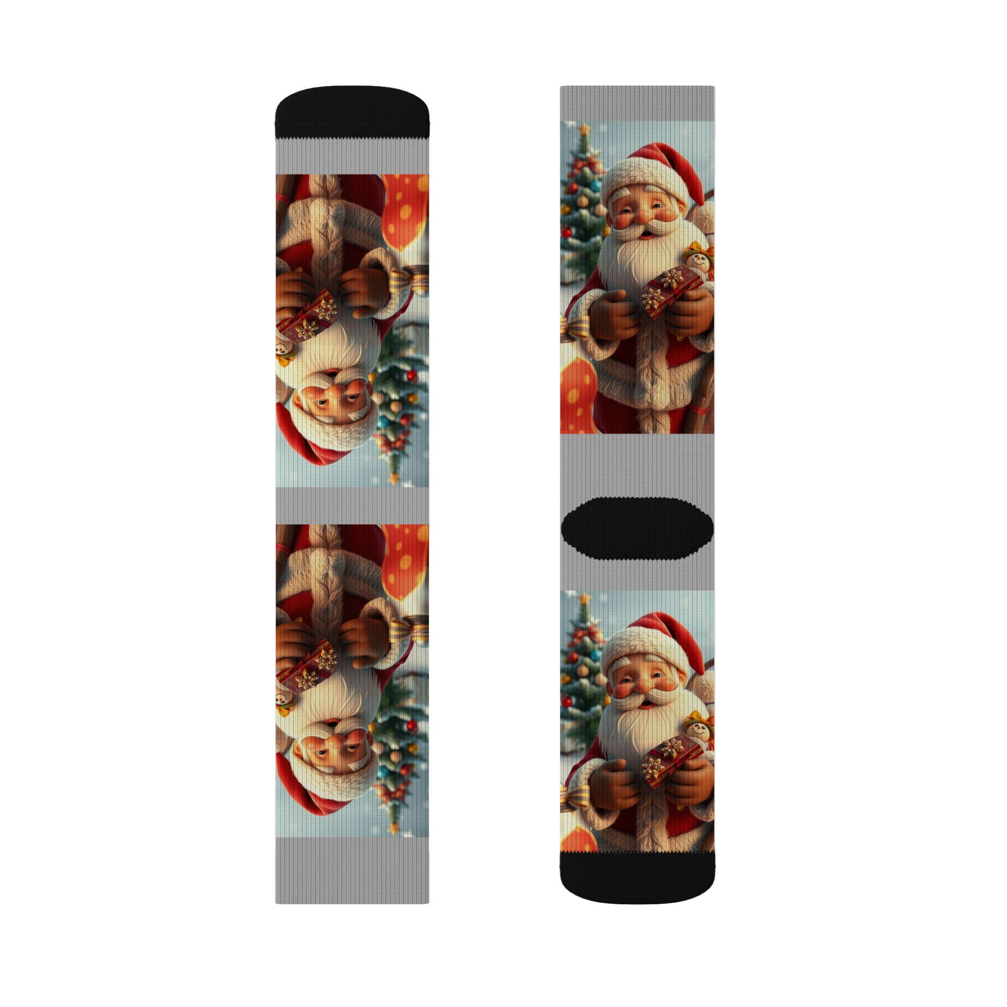 Step into the festive spirit with these cozy and vibrant sublimation socks! Featuring an eye-catching all-over print, these crew-length socks are designed to add a splash of joy to your winter wardrobe. Crafted with a soft fleece lining, they promise ultimate comfort while keeping your feet warm on chilly days. Whether you're lounging at home or out holiday shopping, these unisex socks are perfect for anyone looking to showcase their love for the season. Ideal for Christmas celebrations, gift exchanges, or cozy nights in, they make a delightful present for family and friends. Treat yourself or a loved one to a bit of festive cheer!
