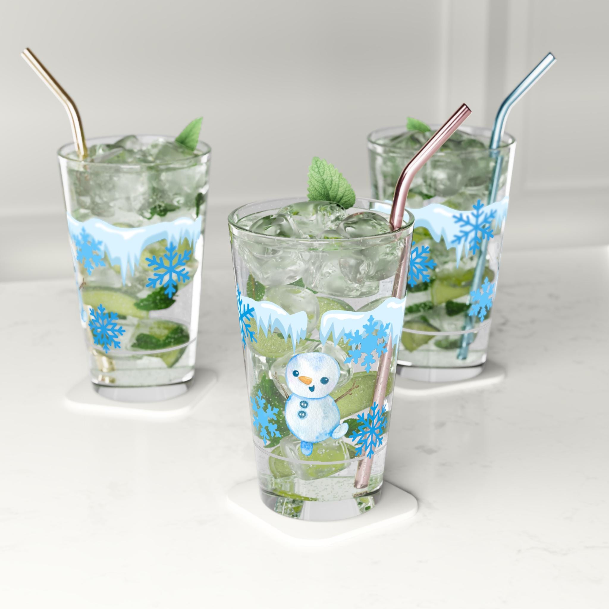 Elevate your beverage experience with this charming pint glass. Adorned with a delightful winter snowman design and frosty snowflakes, this 16oz glass is perfect for cozy nights by the fire or festive gatherings. Its clear glass showcases your favorite drinks beautifully, whether it's refreshing juice or a cold beer. This versatile piece is not only functional but adds a whimsical touch to your table setting, making it ideal for holiday parties, winter celebrations, or simply enjoying a moment of cheer with friends and family. Perfect for anyone who loves a fun and functional drinkware, especially during the holiday season!