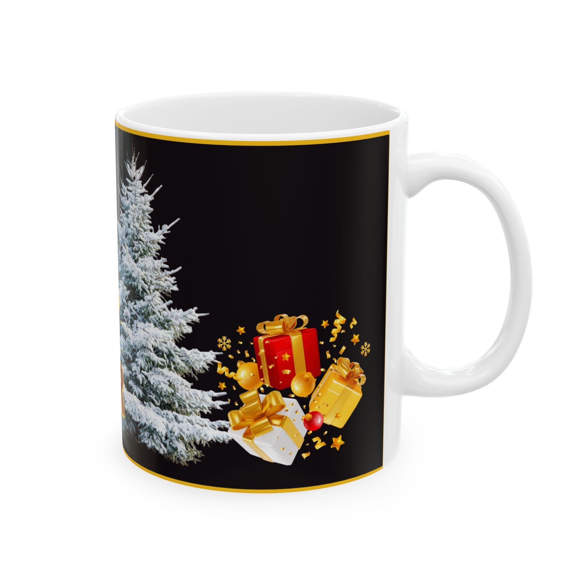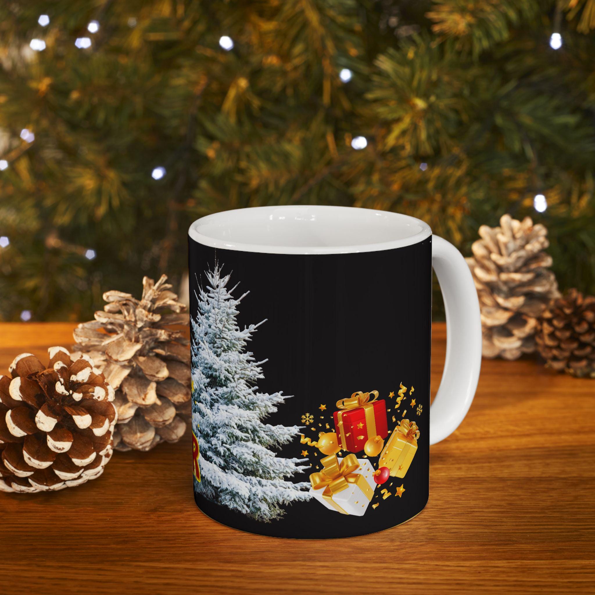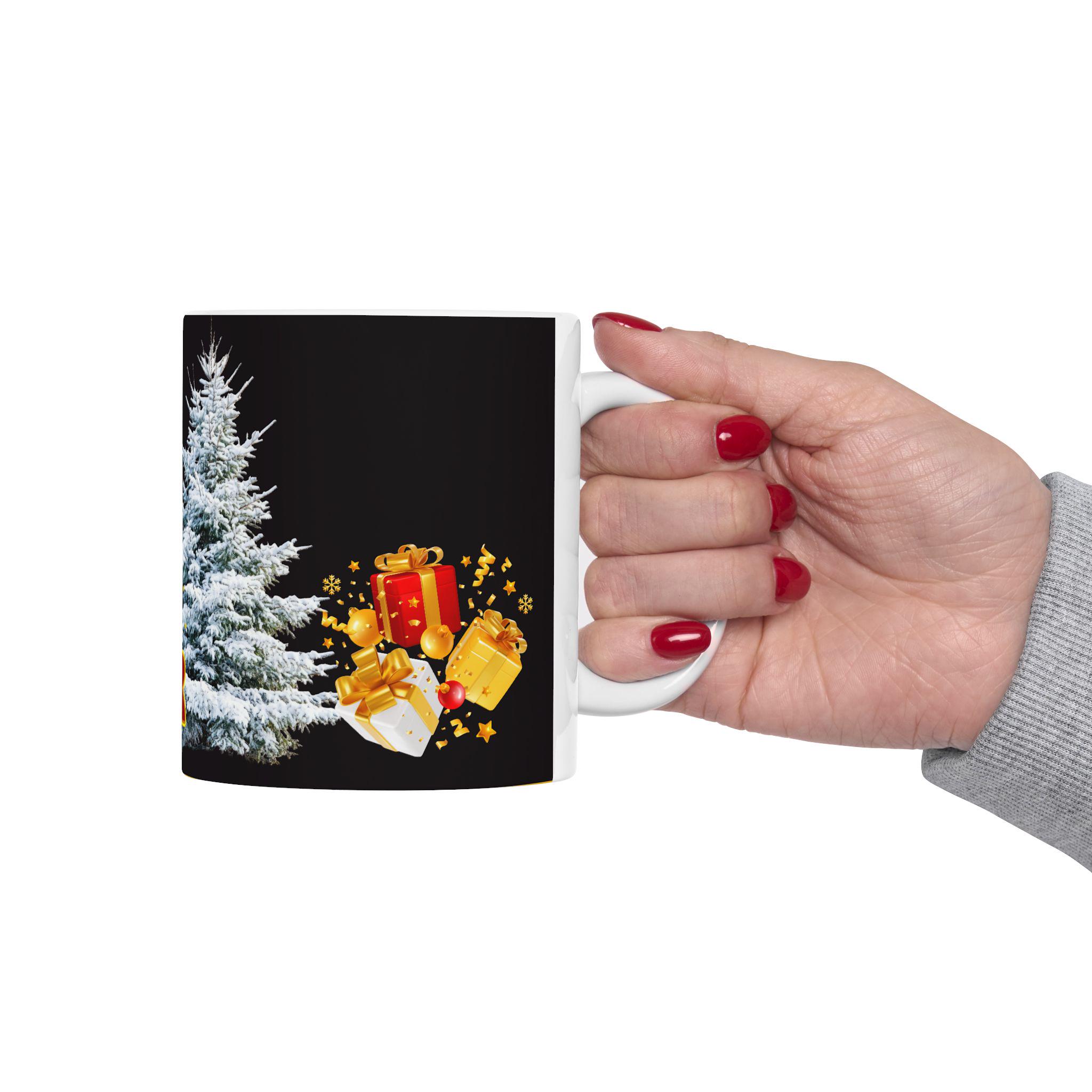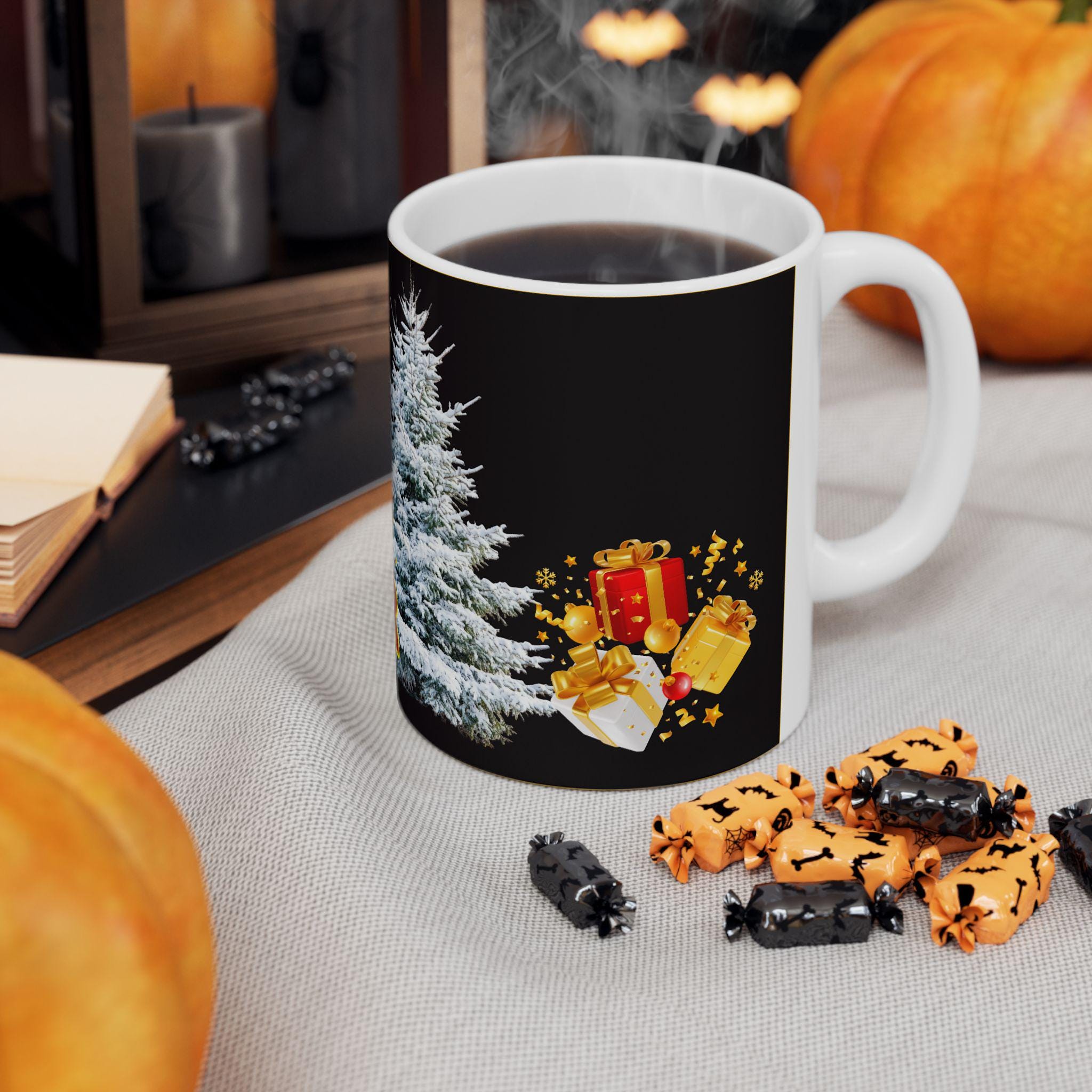 Warm, cheerful, and a little bit playful — this glossy ceramic mug brings festive New Year energy to every morning ritual. A deep black background makes the snowy fir and bright red horse pop, while the golden trim around the rim adds a celebratory gleam. It feels right for quiet moments with a steaming latte or for laughing with friends as midnight memories are retold. The sturdy C-handle sits comfortably in hand, and the durable print holds up to daily use so the design keeps its color and sparkle through many washes and gatherings.