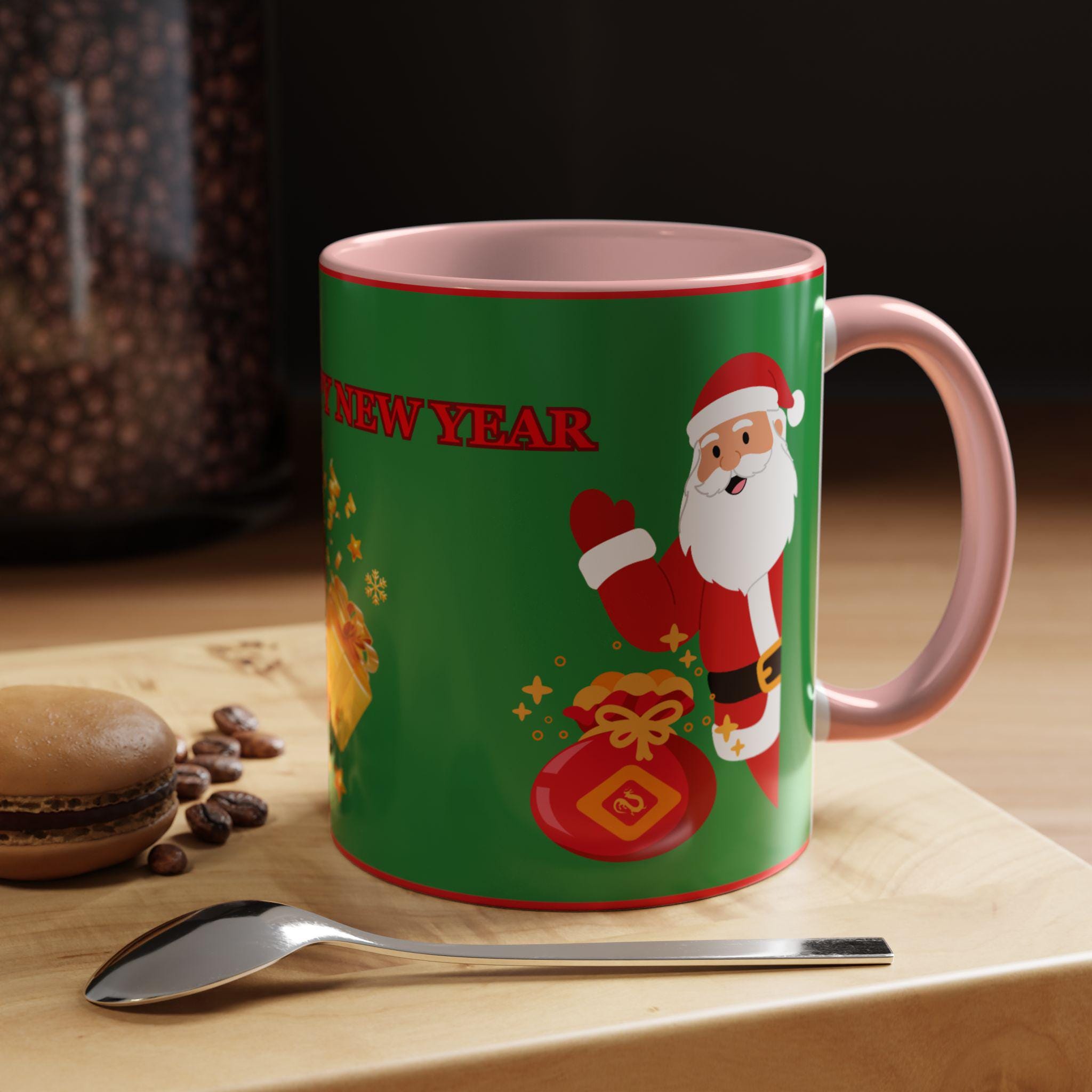 Add a festive touch to your morning routine with this Happy New Year Santa Mug. The vibrant colors and eye-catching color contrast create a cheerful atmosphere, perfect for the holiday season. This Accent Coffee Mug is relevant to anyone looking to celebrate the New Year in style.