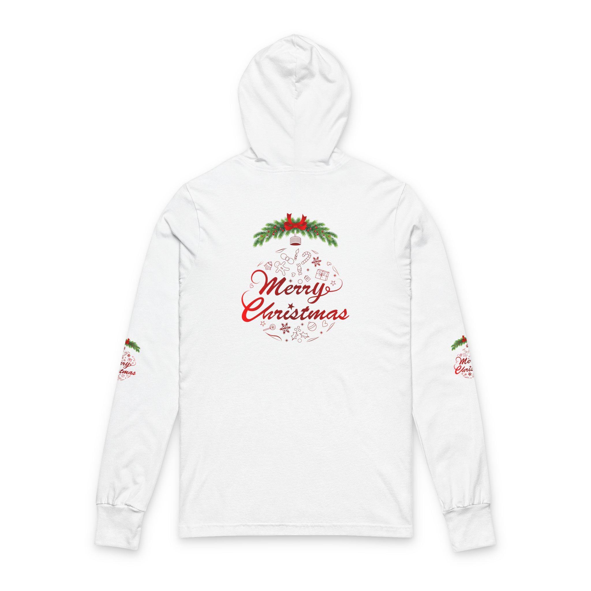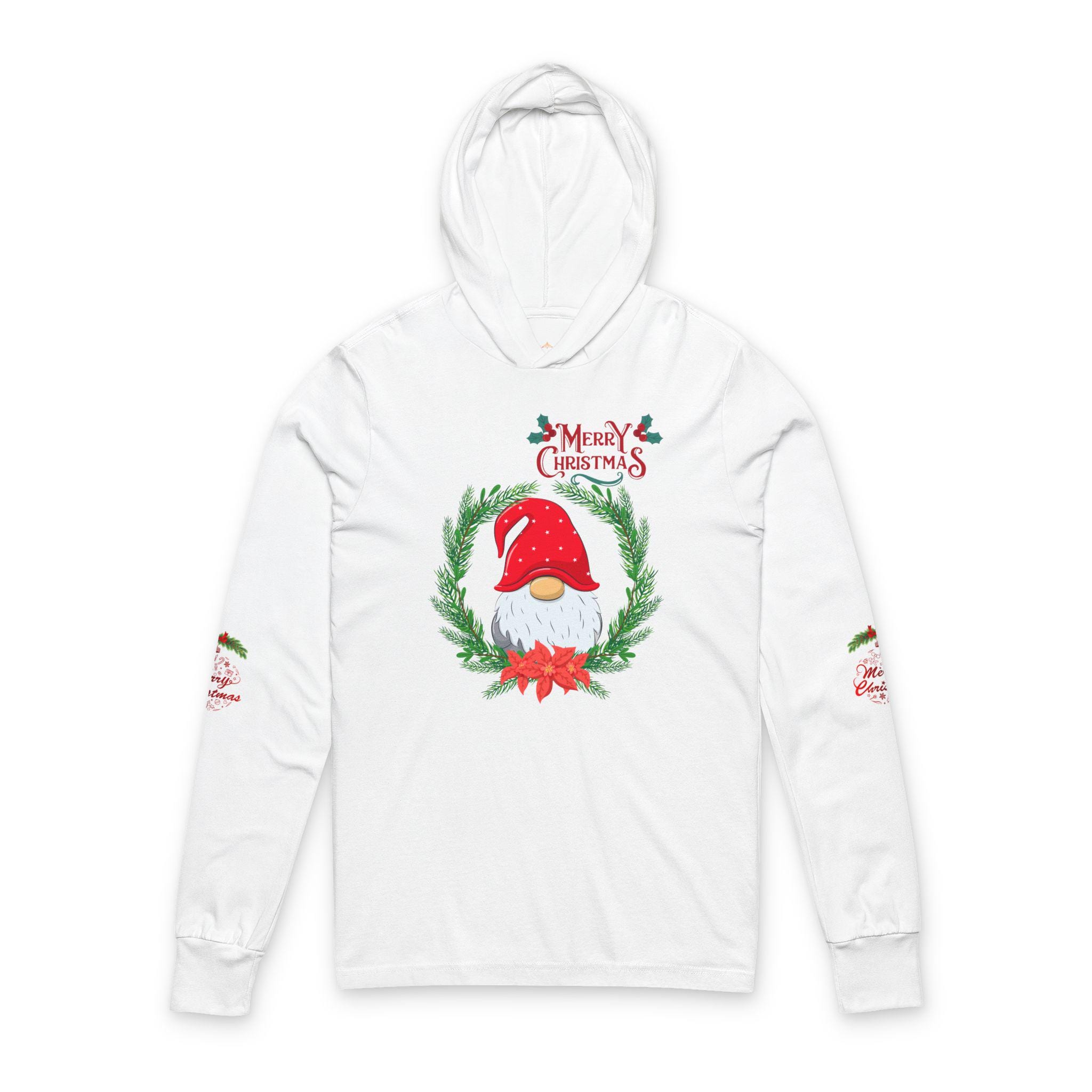 Soft, lightweight hoodie with a hand-painted holiday charm. A cheerful gnome peeks through a green wreath on the chest while flowing script and holly accents extend to the back and sleeves. Wear it on crisp mornings while stringing lights, sipping cocoa, or walking through neighborhood carols. The thin knit drapes casually - easy to layer under a coat or over a thermal - and the breathable cotton keeps movement free during decorating and gatherings. It feels like a quiet, cozy moment by the tree: familiar, warm, and a little whimsical.