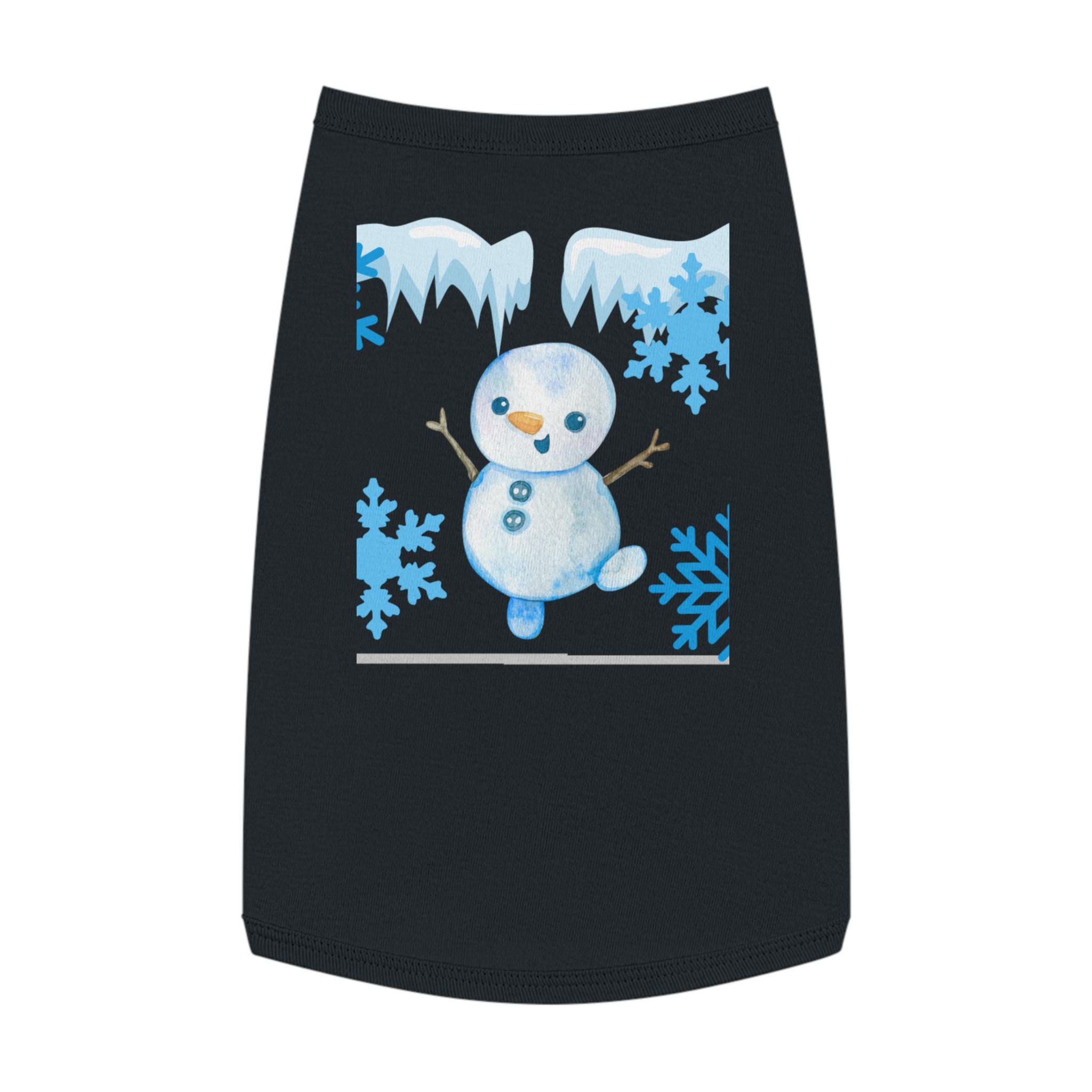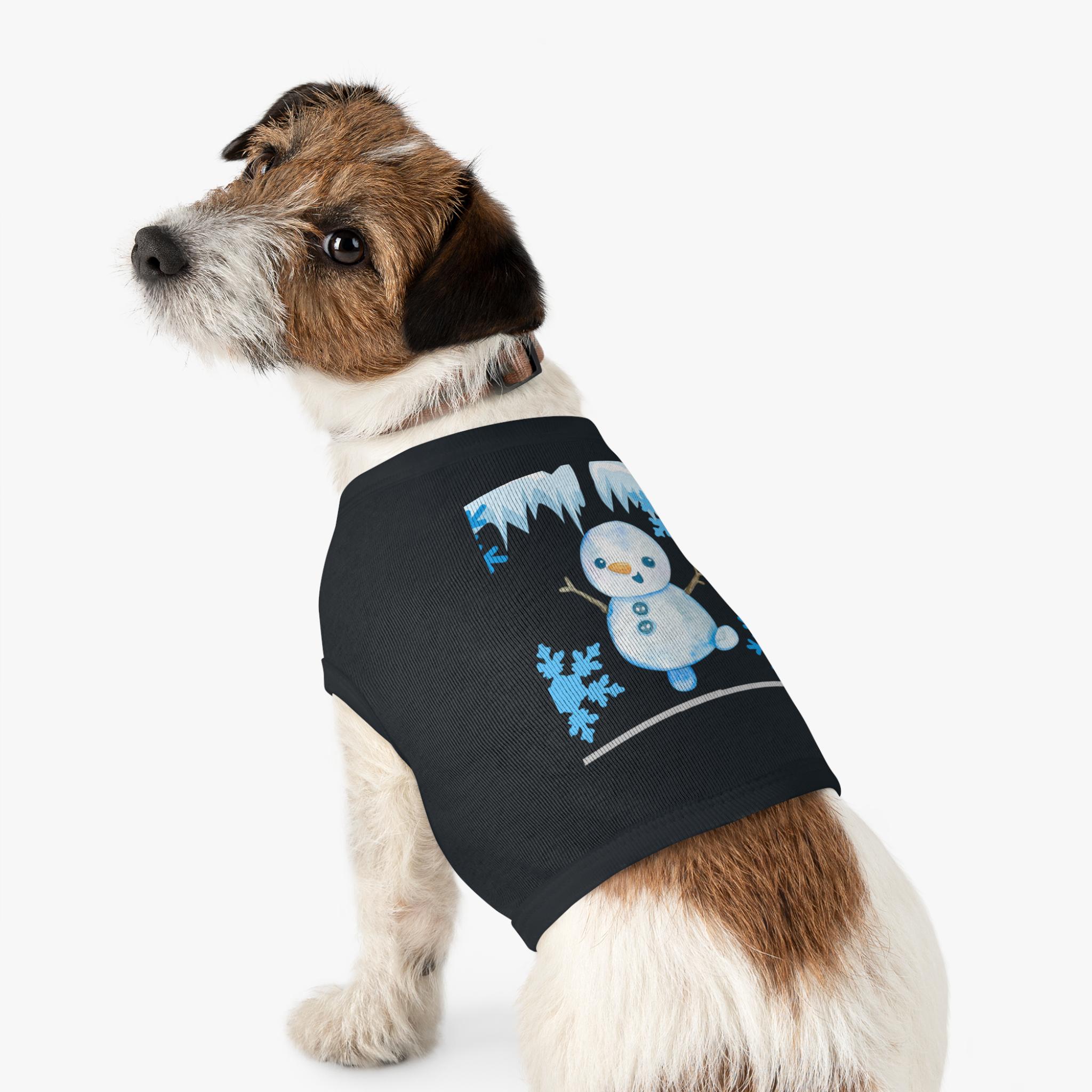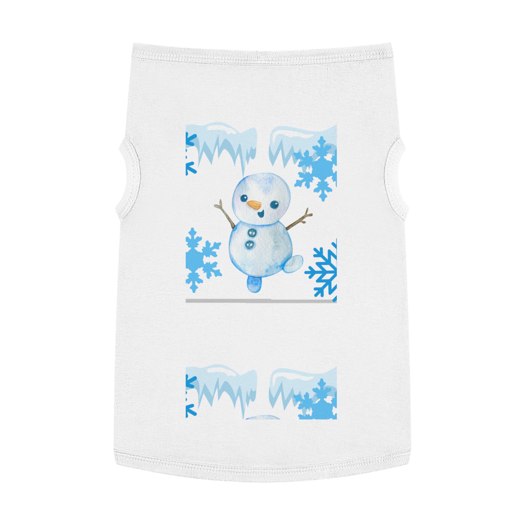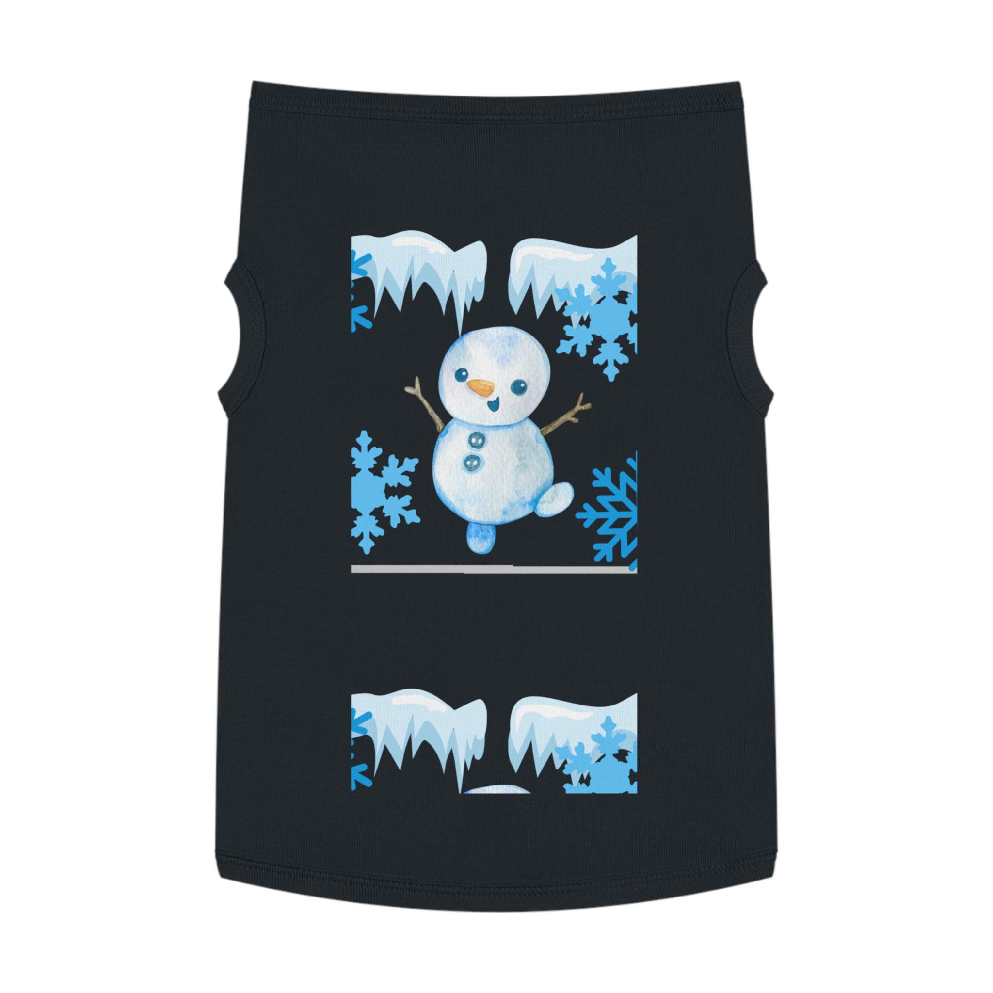 A cozy pet tank that brings winter cheer to small dogs and cats. Soft, smooth combed ringspun cotton feels gentle against fur while the stretchy 1x1 rib knit keeps the shape as your pet moves. A playful snowman and icy-blue snowflake motif adds seasonal charm without bulk, so your companion stays comfortable on crisp walks or lounging by the window. Thoughtfully finished with double-needle ribbed binding at the neck and armholes for clean lines and extra durability. Runs slightly small — size up for broader-chested breeds.
