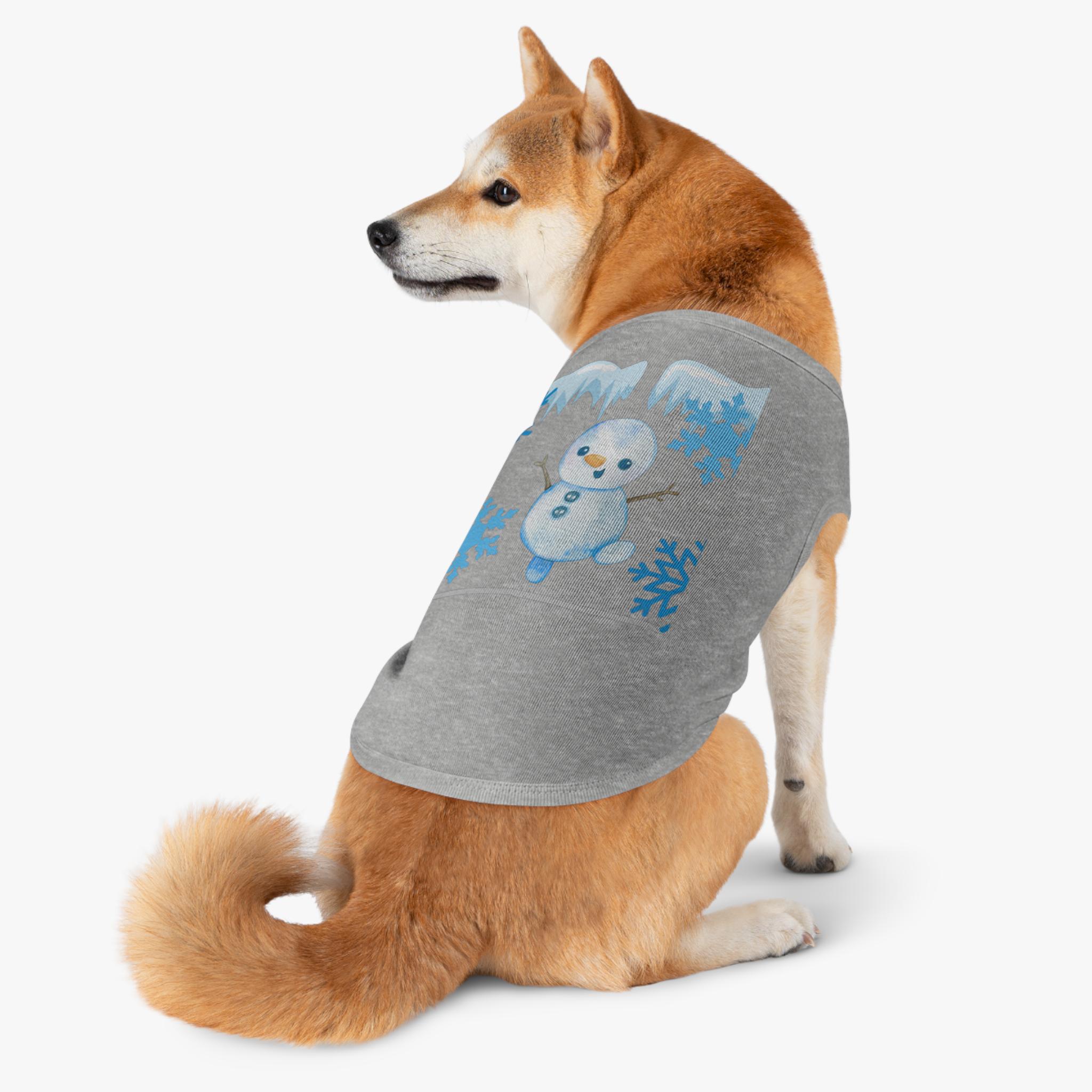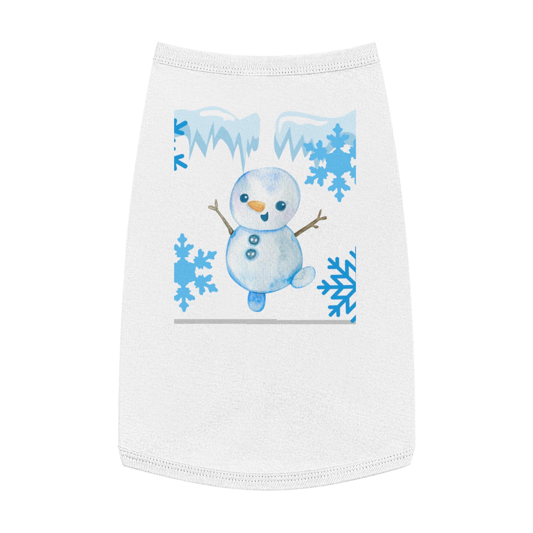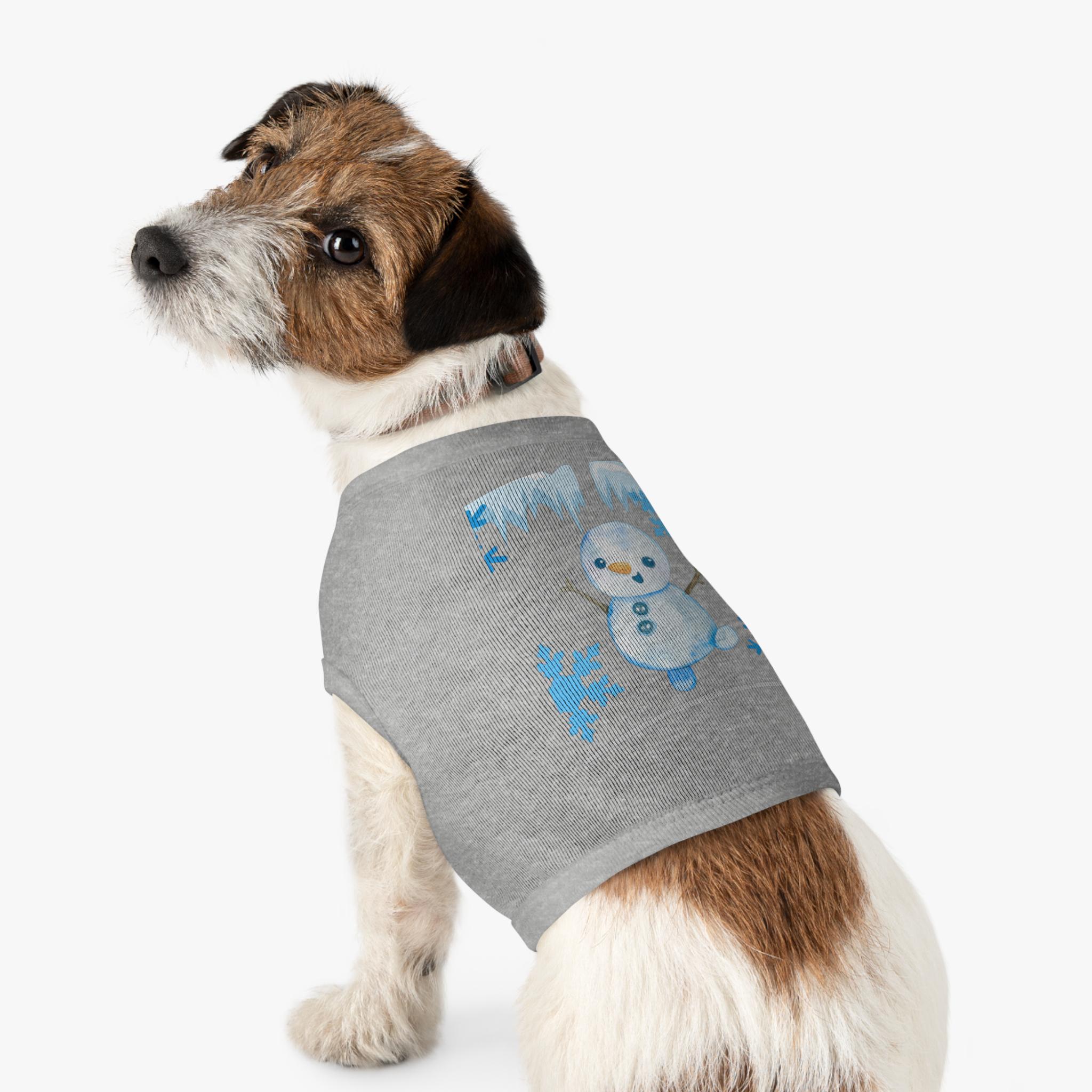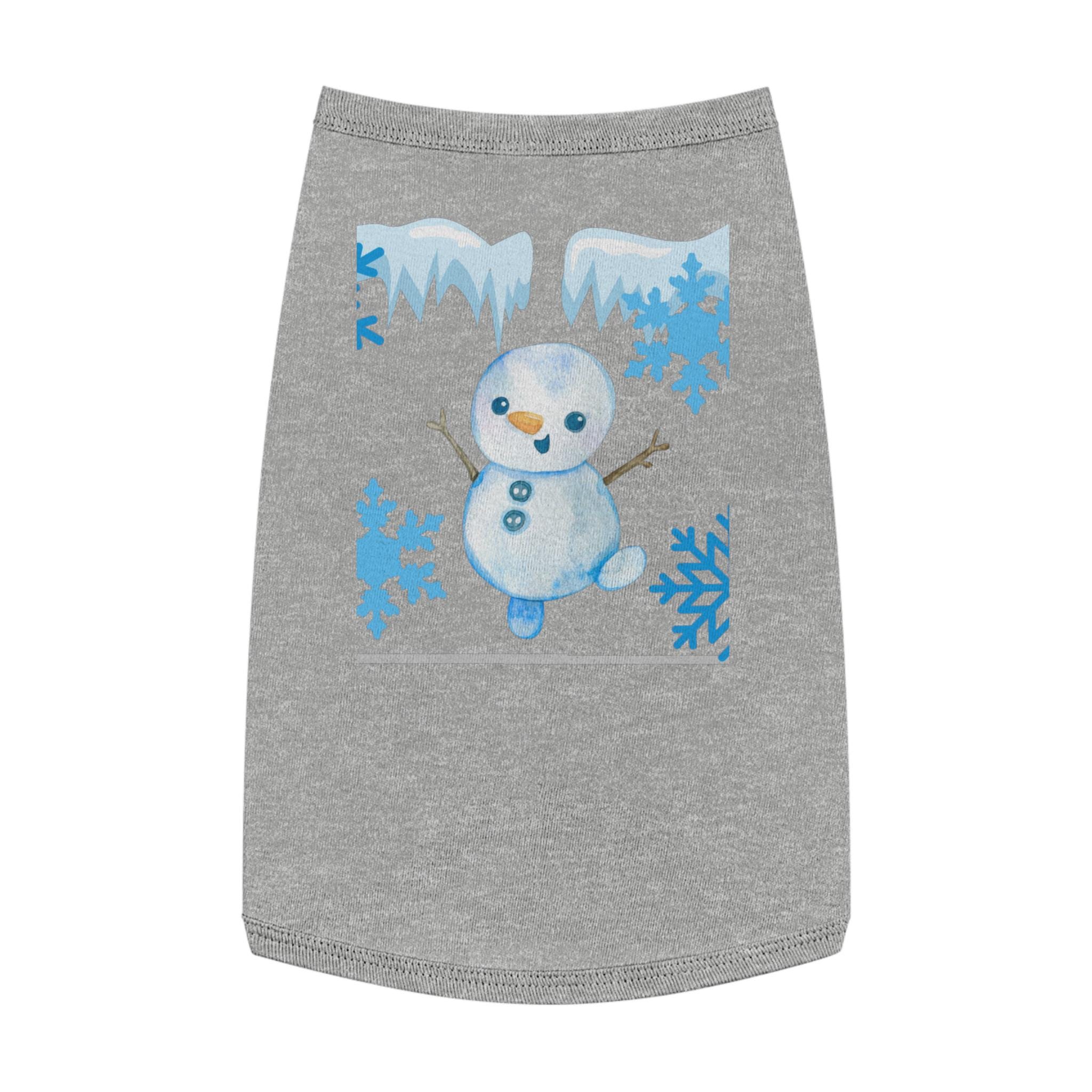 A cozy pet tank that brings winter cheer to small dogs and cats. Soft, smooth combed ringspun cotton feels gentle against fur while the stretchy 1x1 rib knit keeps the shape as your pet moves. A playful snowman and icy-blue snowflake motif adds seasonal charm without bulk, so your companion stays comfortable on crisp walks or lounging by the window. Thoughtfully finished with double-needle ribbed binding at the neck and armholes for clean lines and extra durability. Runs slightly small — size up for broader-chested breeds.