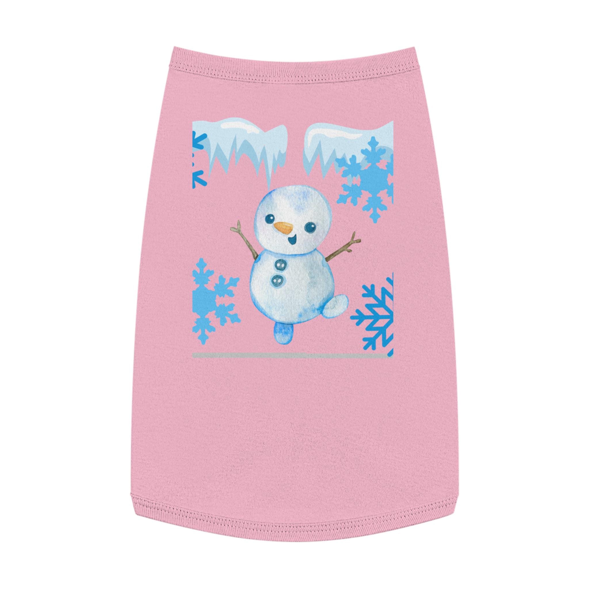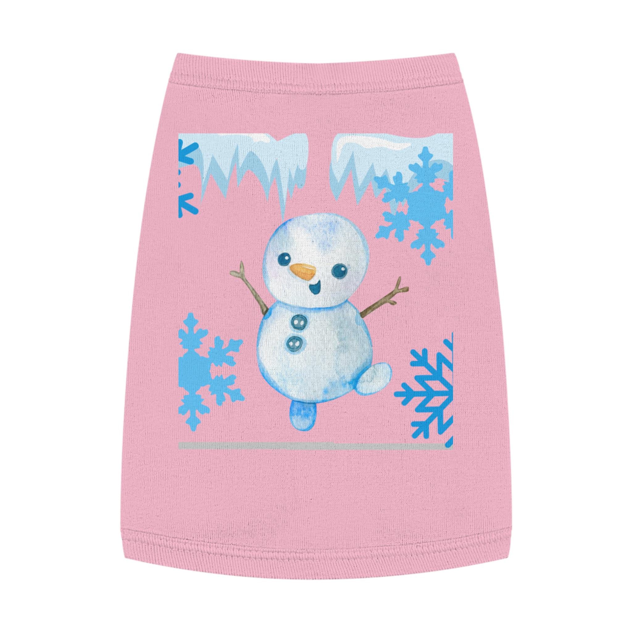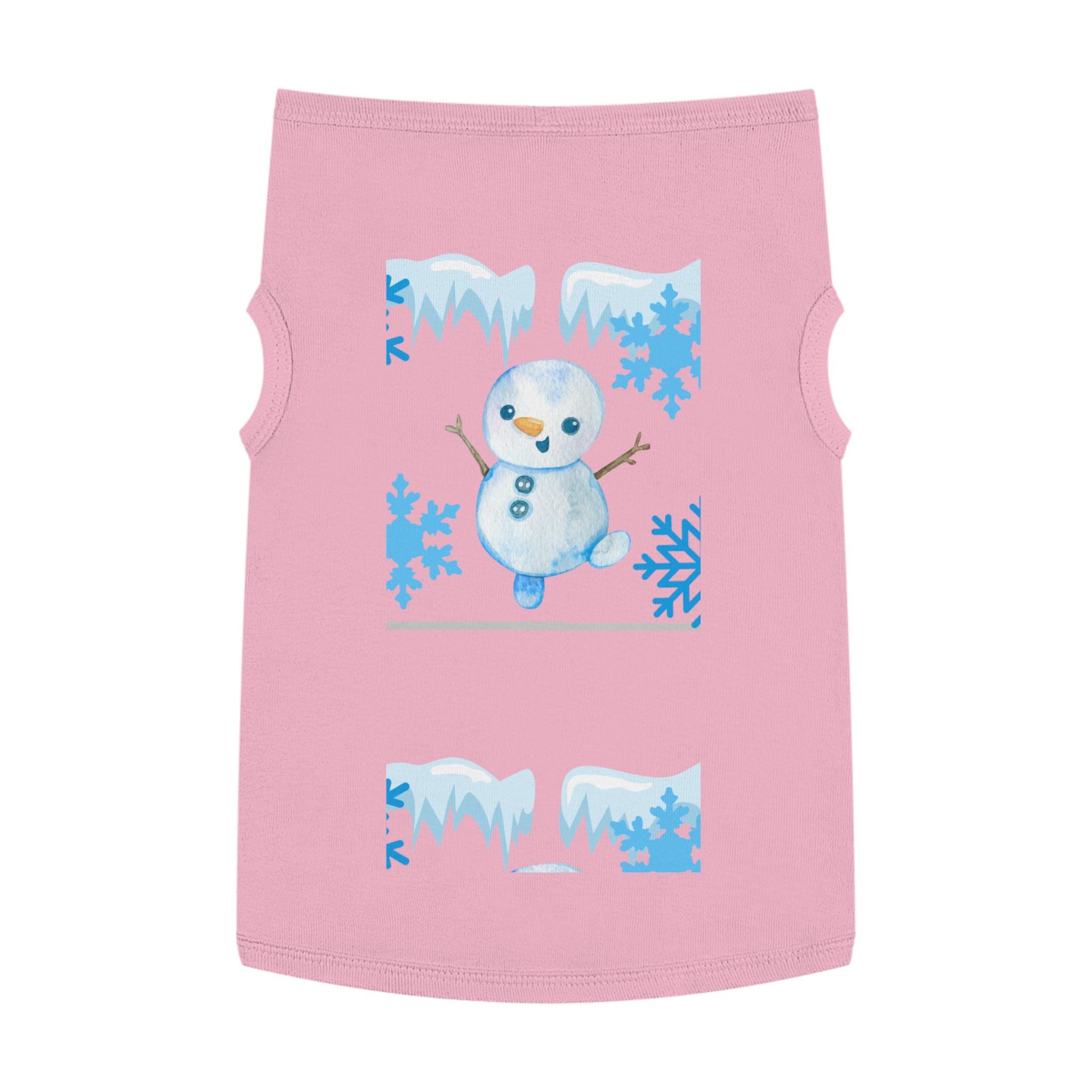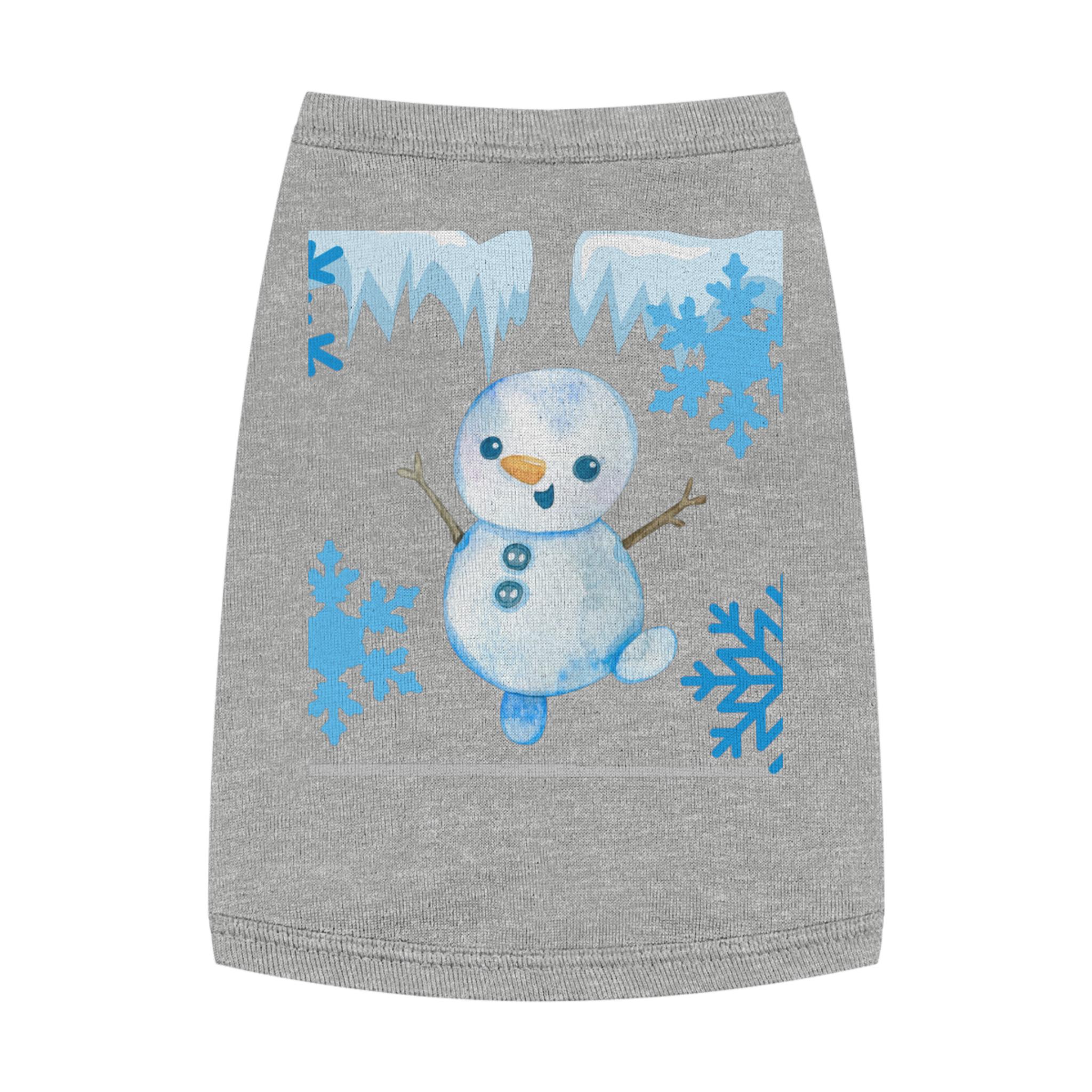 A cozy pet tank that brings winter cheer to small dogs and cats. Soft, smooth combed ringspun cotton feels gentle against fur while the stretchy 1x1 rib knit keeps the shape as your pet moves. A playful snowman and icy-blue snowflake motif adds seasonal charm without bulk, so your companion stays comfortable on crisp walks or lounging by the window. Thoughtfully finished with double-needle ribbed binding at the neck and armholes for clean lines and extra durability. Runs slightly small — size up for broader-chested breeds.