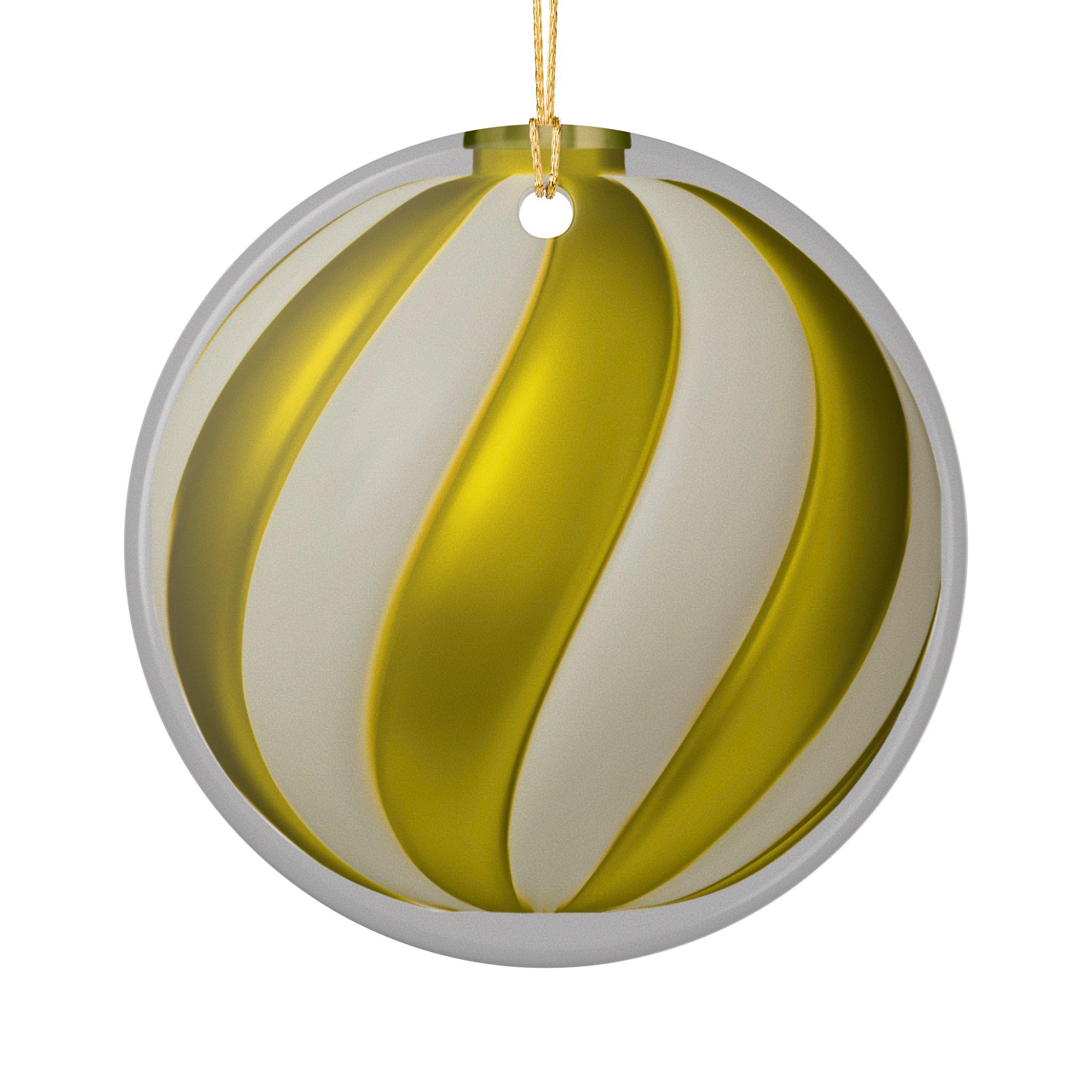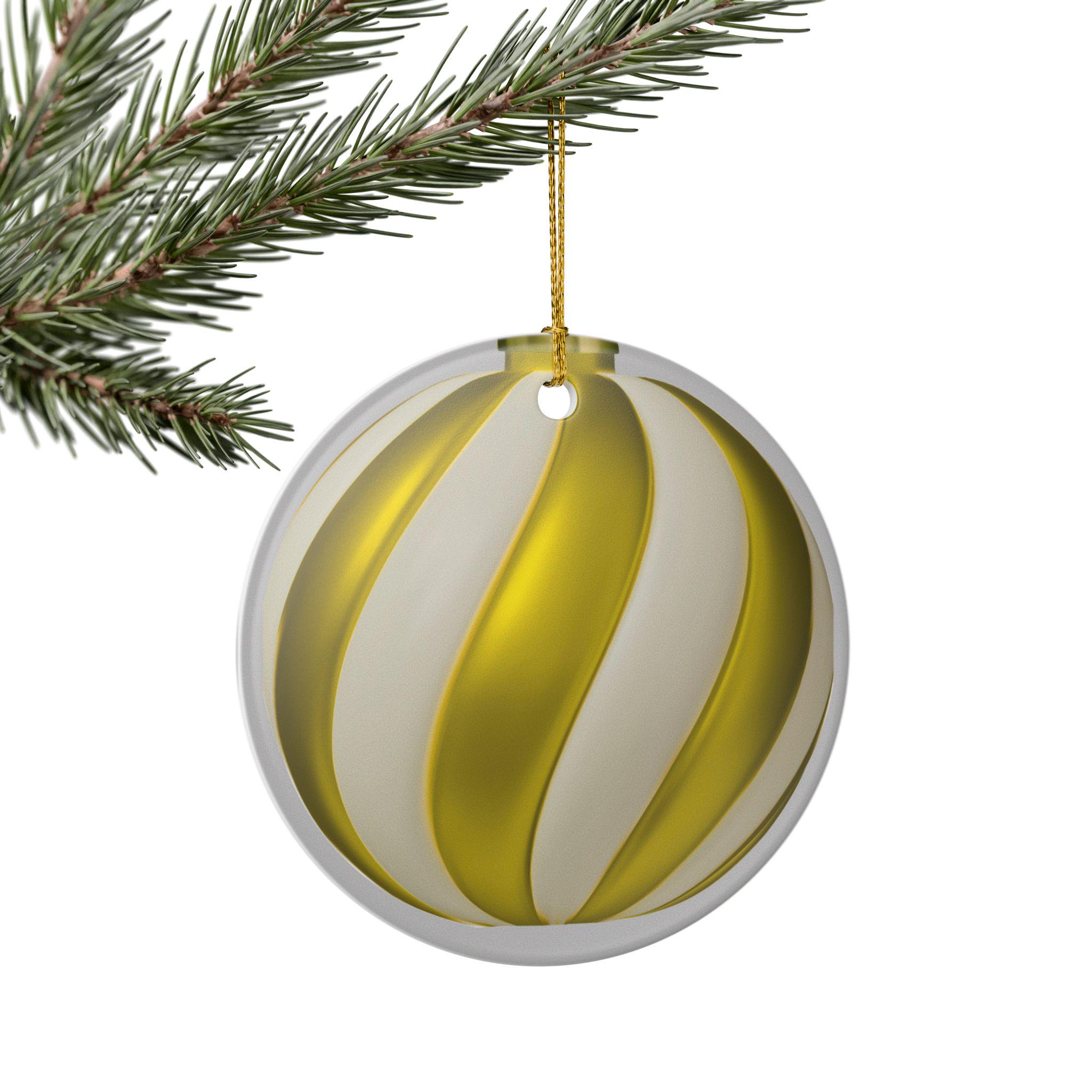 A graceful ceramic ornament that brings a quiet, festive glow to your holiday decor. Smooth white ceramic forms the canvas for soft, golden swirls that catch light without shouting. The matte-printed design sits atop a glossy surface, giving a refined contrast that reads modern yet warm. Hung by the included gold string, this single-sided piece feels thoughtfully made — small enough to nestle among branches or hang from a ribbon on a mantel. It’s the kind of ornament that settles into familiar spaces and adds a touch of understated cheer during winter gatherings or a calm, reflective solstice evening.