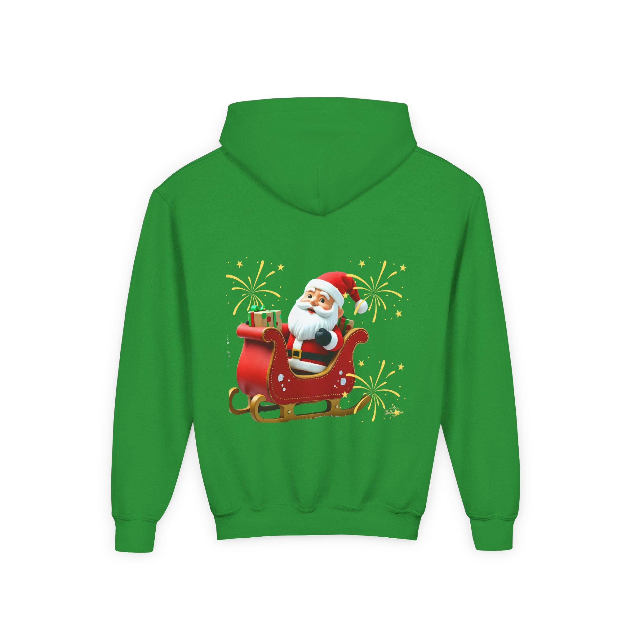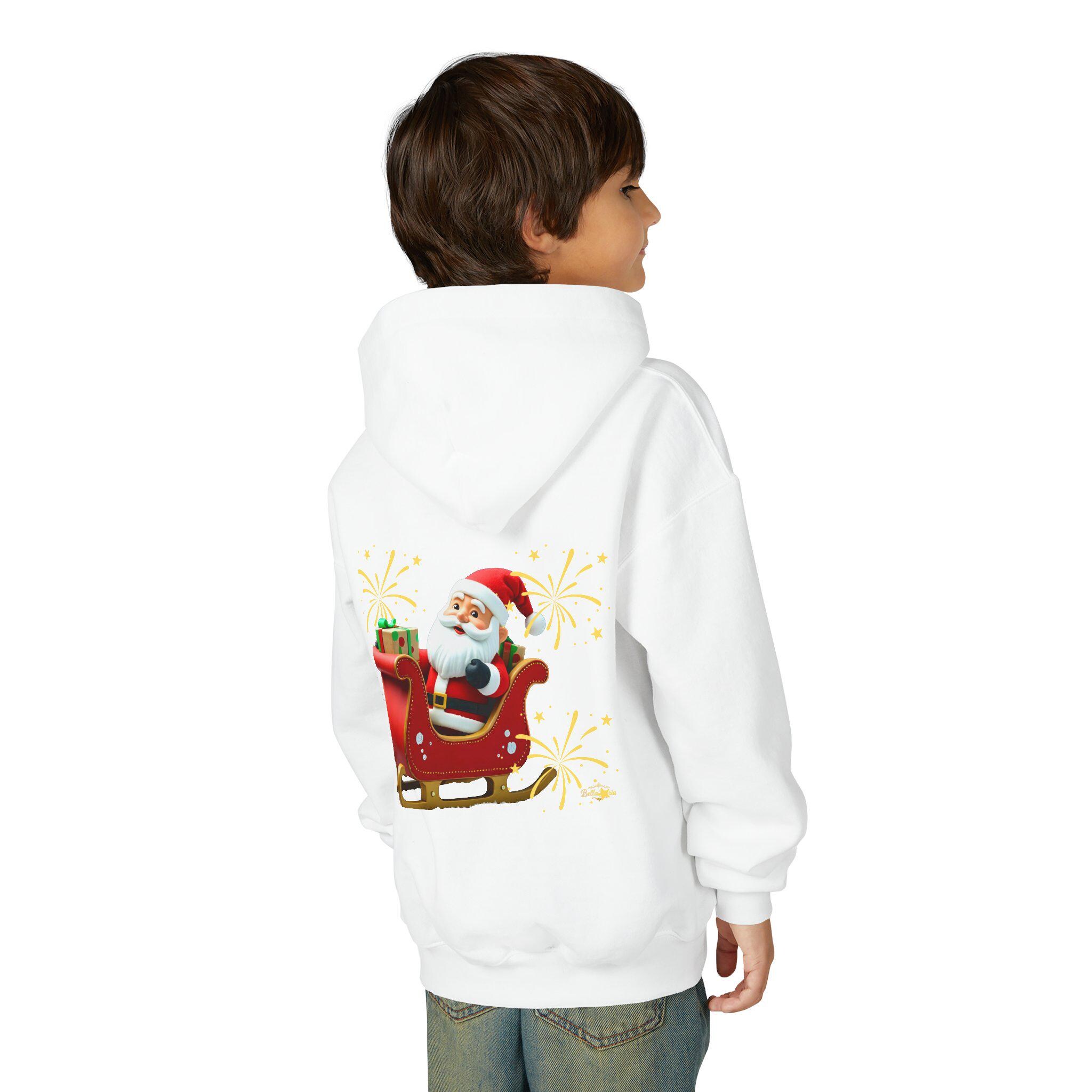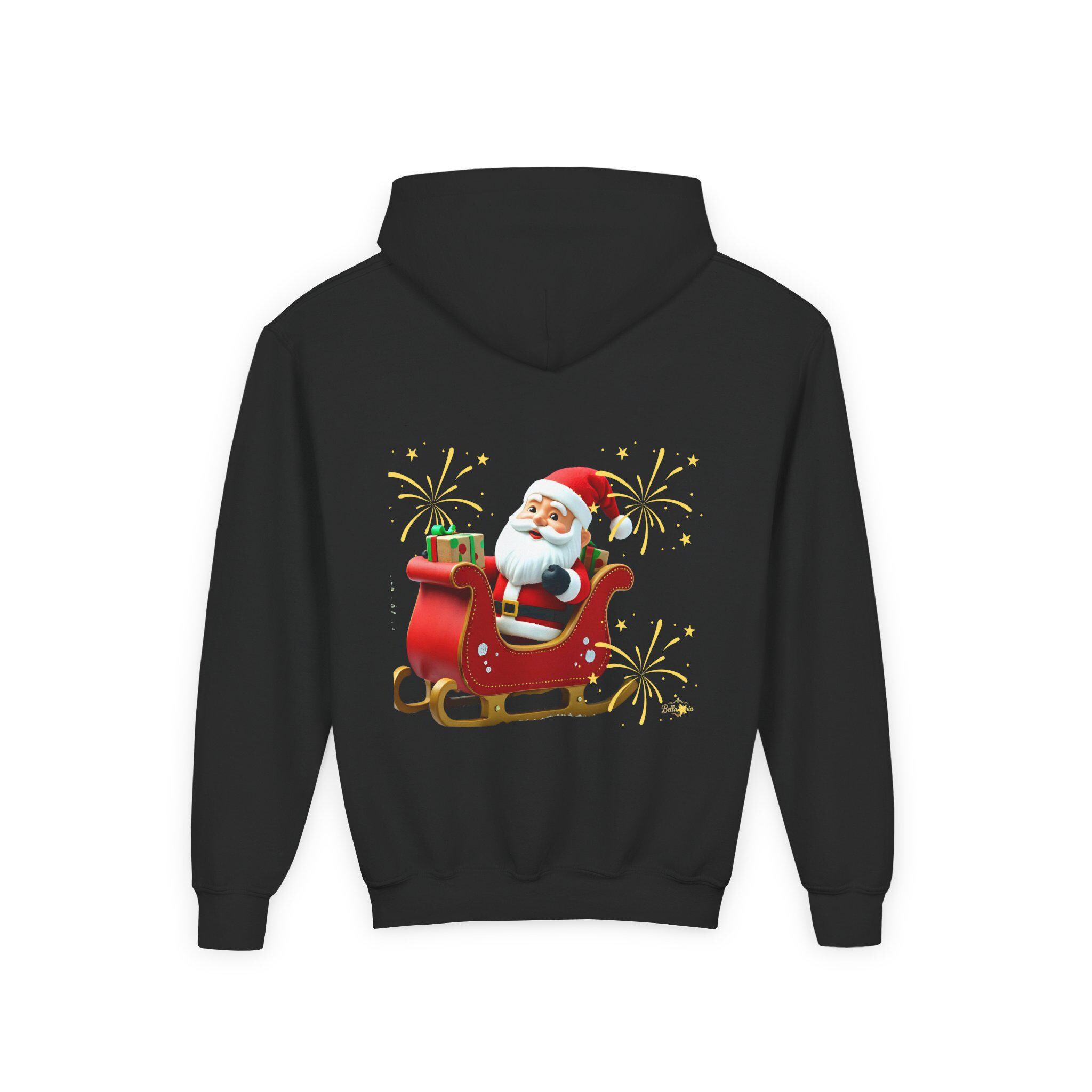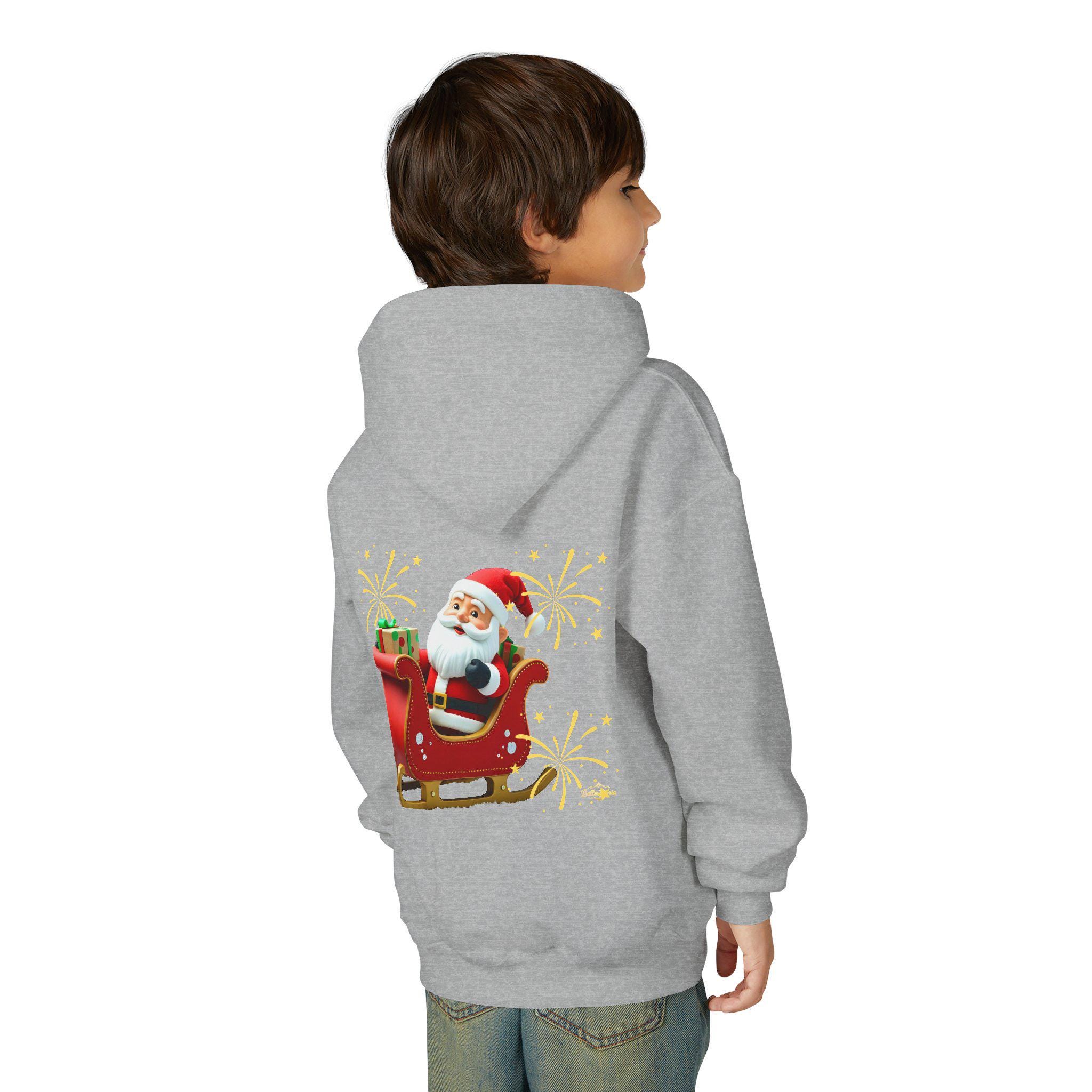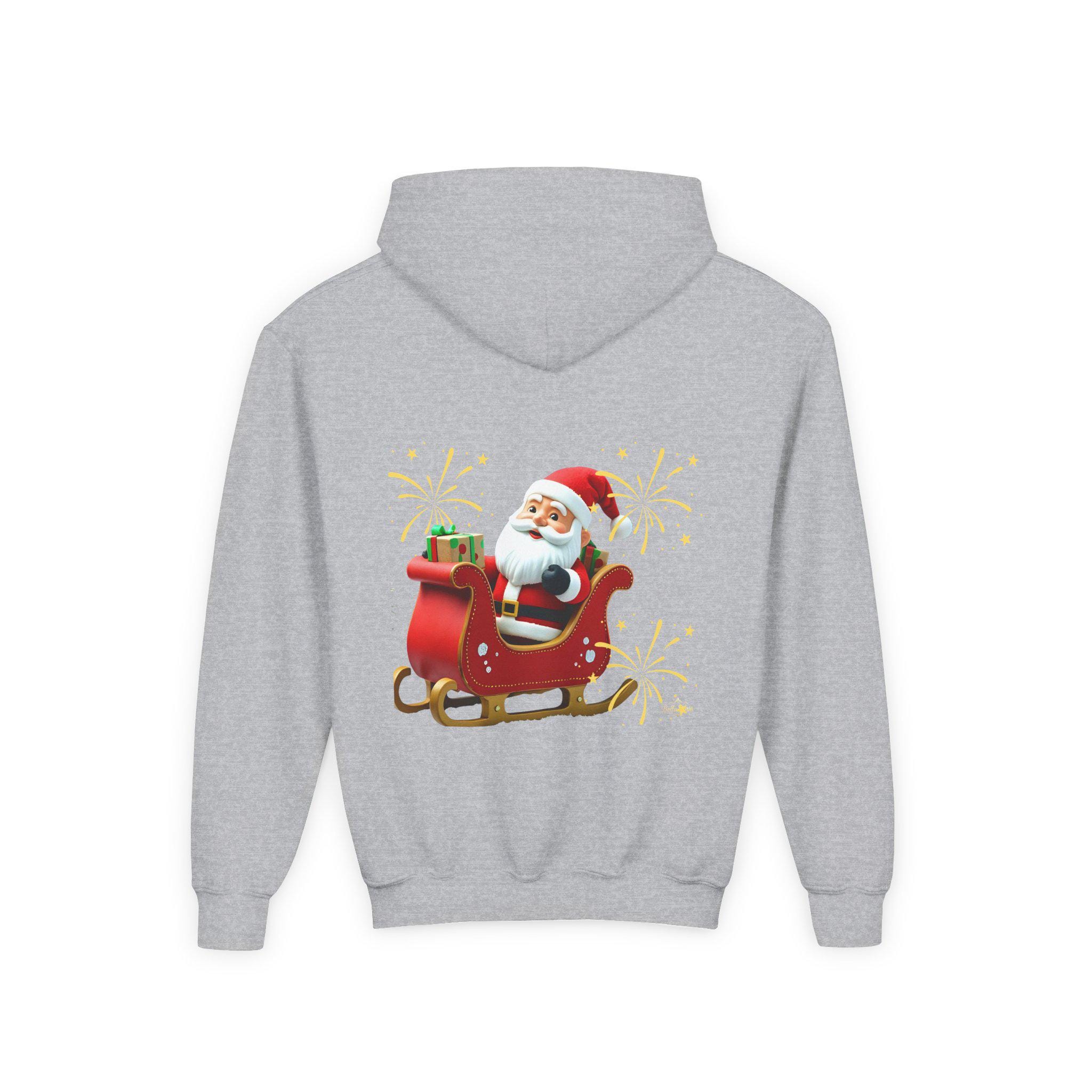 Soft, cozy, and merry — this youth hoodie brings Santa’s sleigh ride to chilly afternoons and holiday gatherings. The bright, playful illustration sits proudly on front and back, sparkling wide-eyed excitement as kids zip up and head out to Caroling, school concerts, or family photos. The medium-weight fabric holds warmth without bulk, while the roomy kangaroo pocket keeps small hands snug and valuables close. Thoughtful construction — twill necktape, sewn-in label, and reliable stitchwork — means this hoodie lives through winter recession, holiday parties, and every cookie-baking session in between. Available with embroidered chest accents or crisp DTF/DTG prints for a lively finish that keeps the festive spirit front and center.