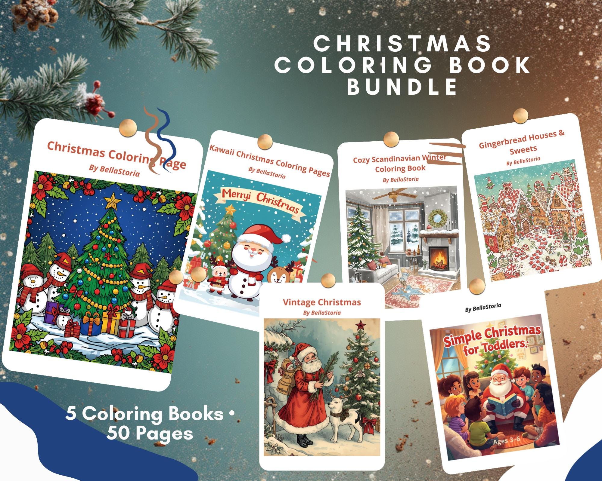 🎄 Christmas Coloring Book Bundle – 5 Books, 50 Pages of Festive Fun!