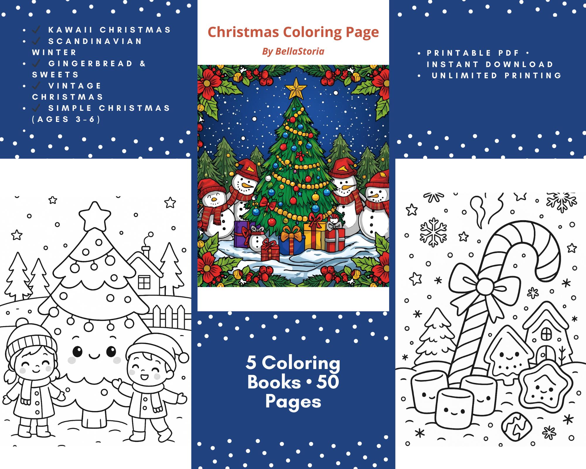 Celebrate the magic of Christmas with this complete Christmas Coloring Book Bundle, featuring 5 different festive coloring books in one instant download.